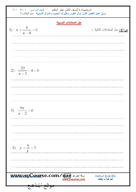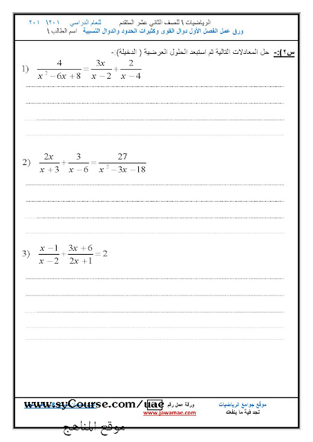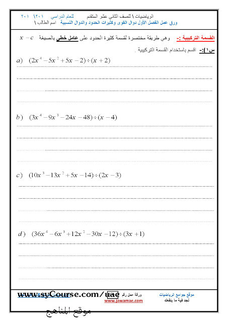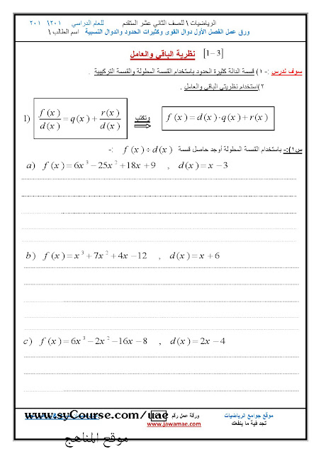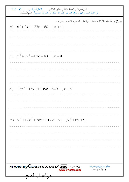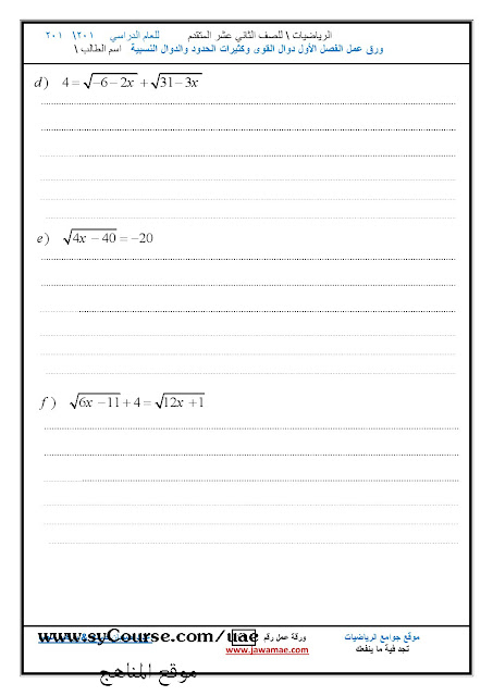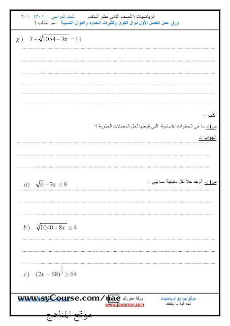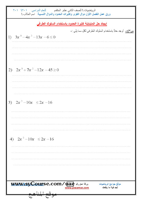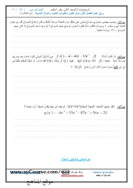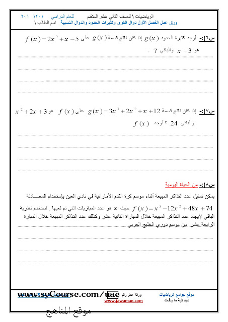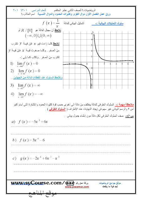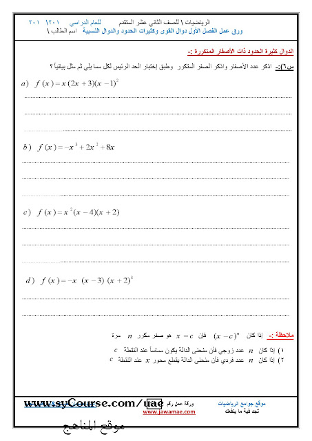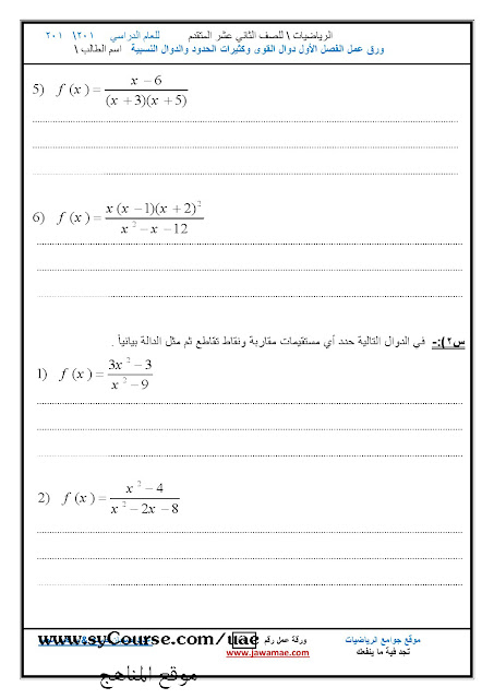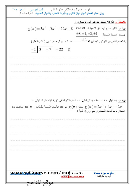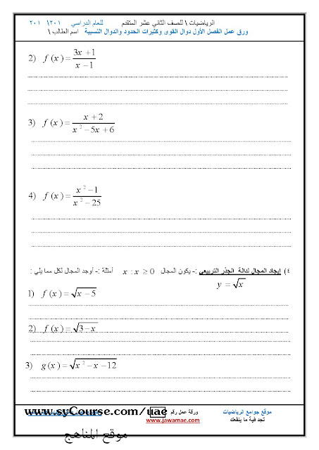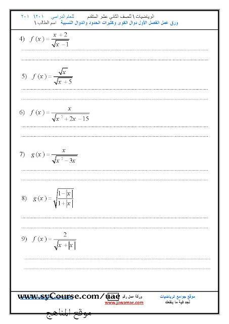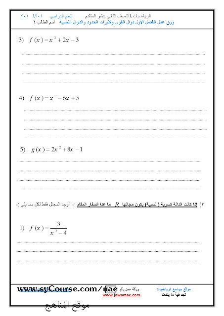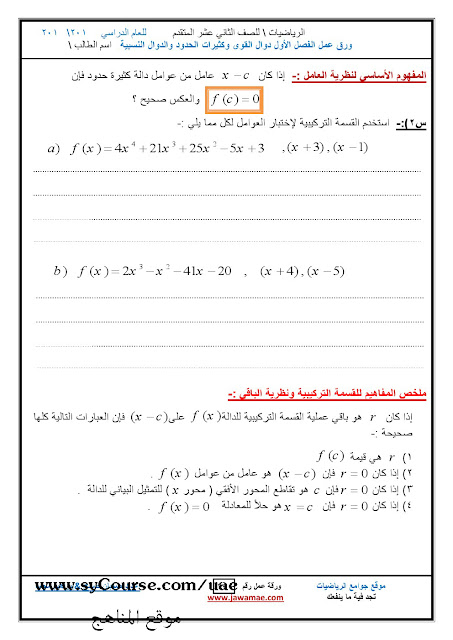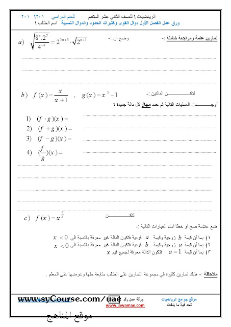 الصف الثاني عشر المتقدم, الفصل الأول, رياضيات, جميع أوراق عمل 2016-2017 لتحميل الملف على شكل كتاب الكتروني اتبع الرابط الاتي: http://upload.sycourse.com/download.php?f=math.pdf