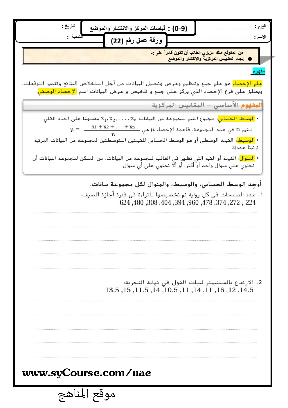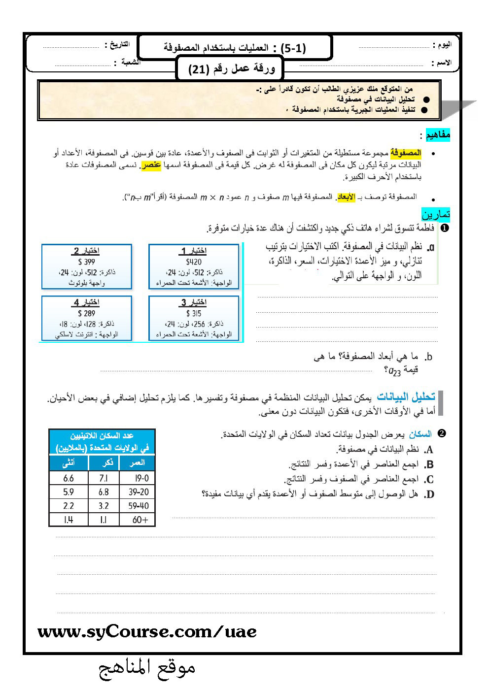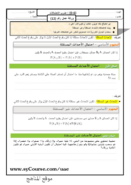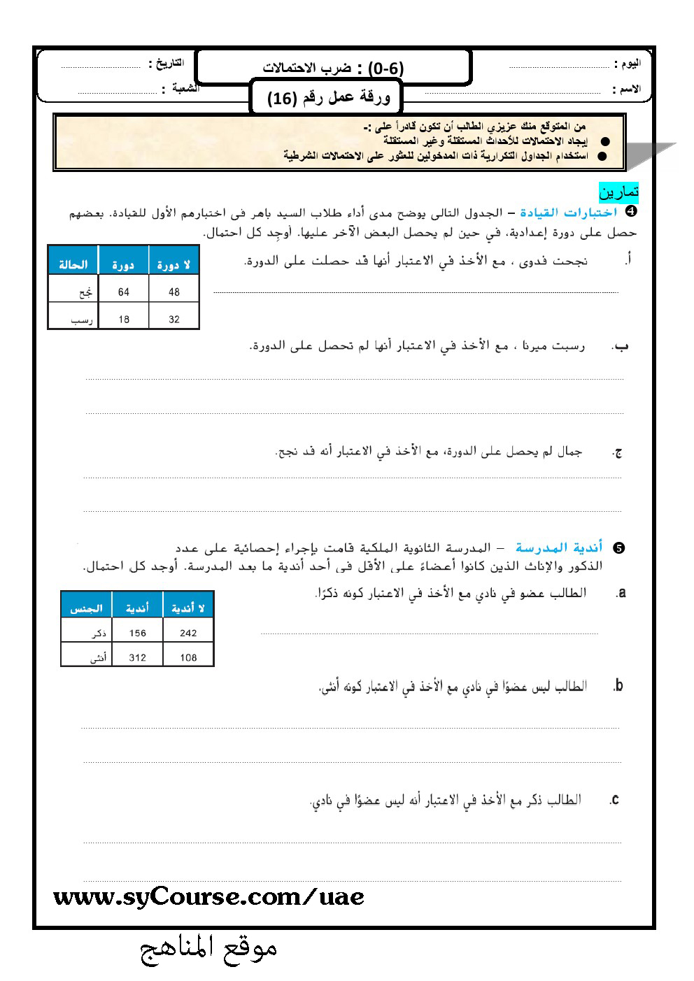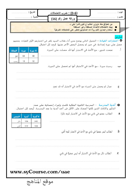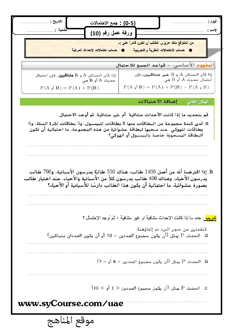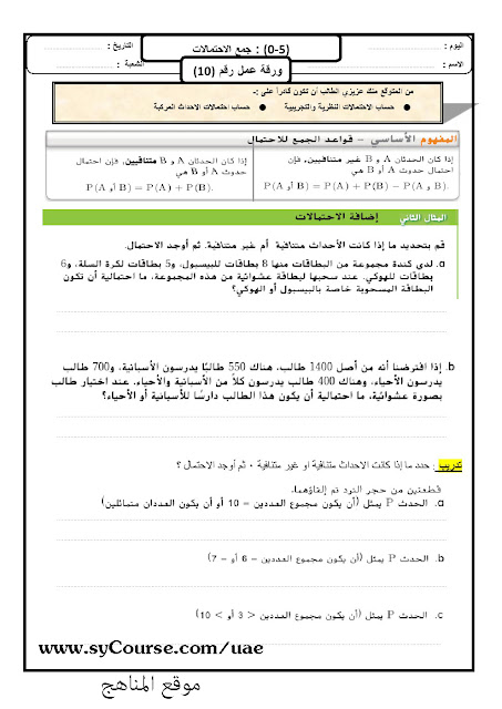 معلومات الملف: الصف العاشر المتقدم, الفصل الأول, رياضيات, جميع أوراق عمل 2016-2017 | ||