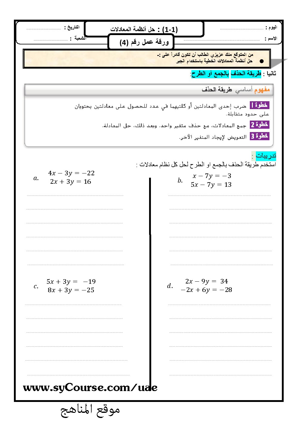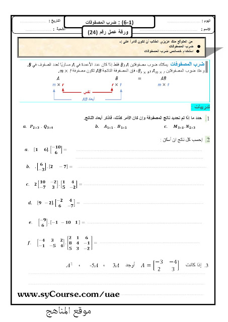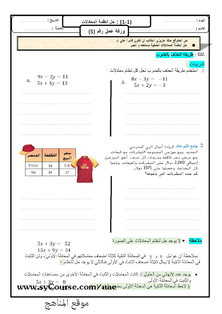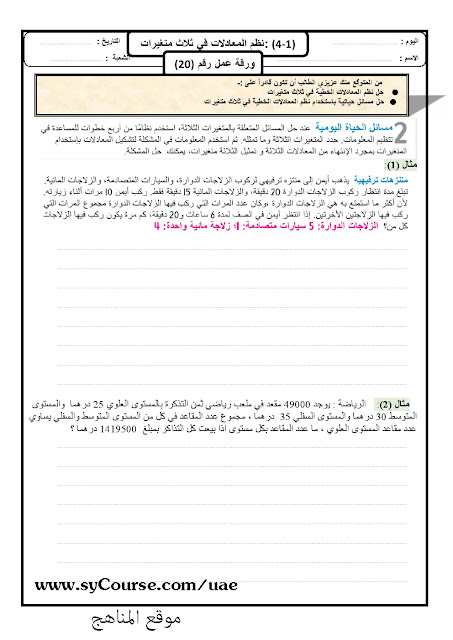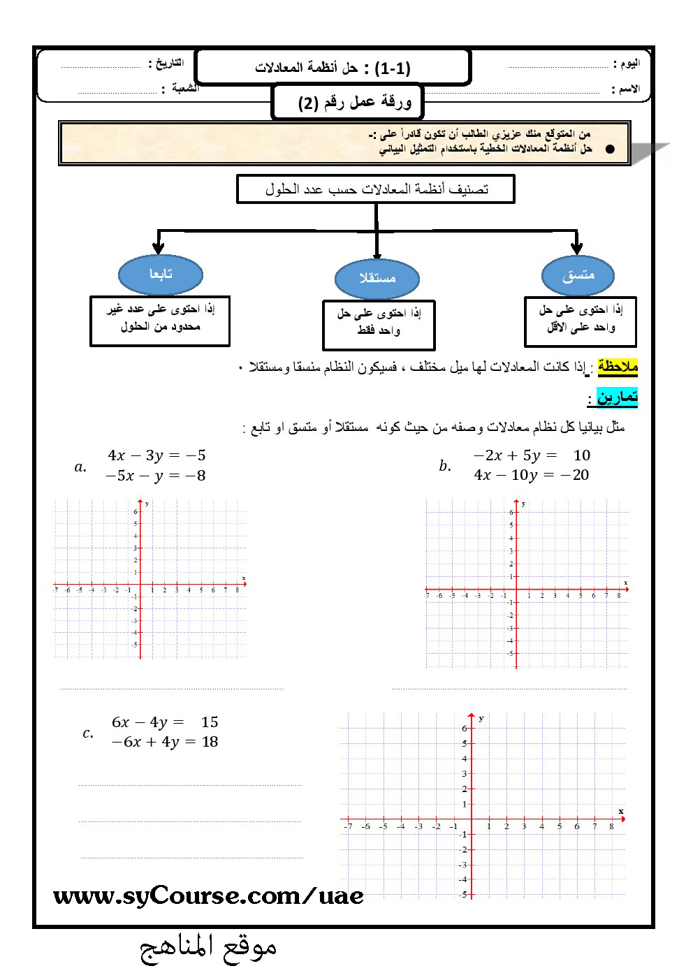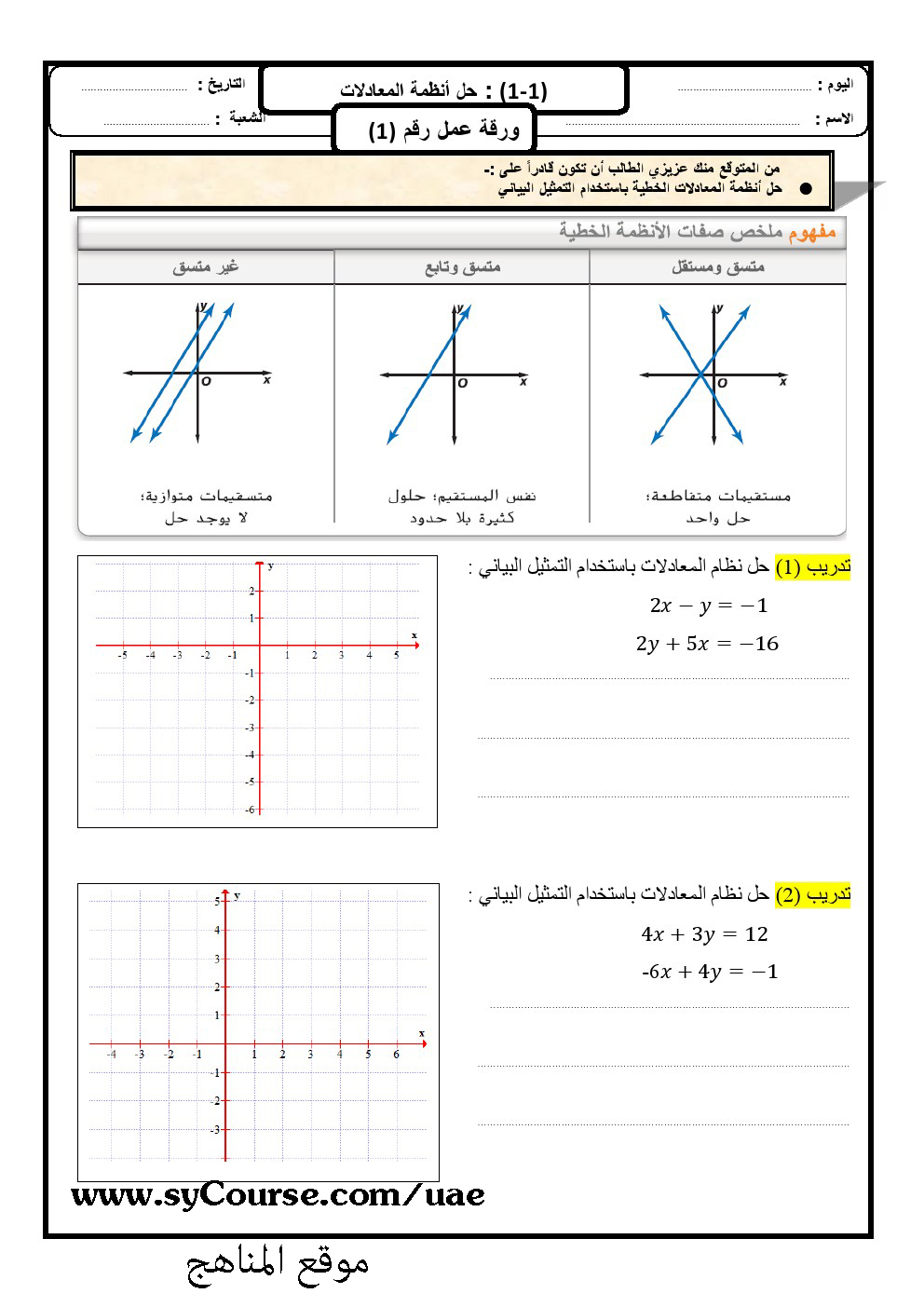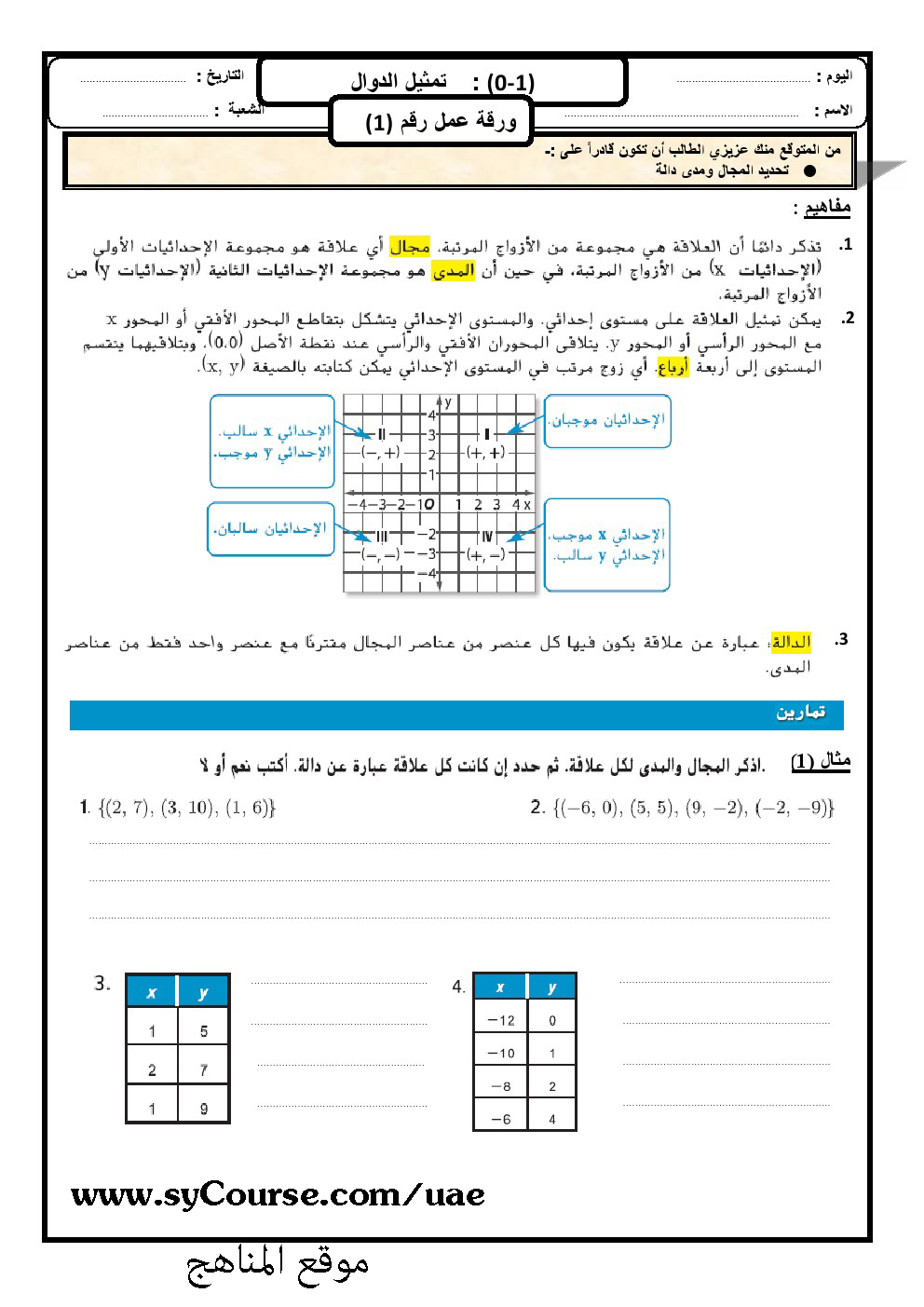 أنت هنا: موقع المناهج ⇦ المناهج الإماراتية ⇦ الصف العاشر المتقدم ⇦ رياضيات ⇦ الفصل الأول ⇦ أوراق عمل |
