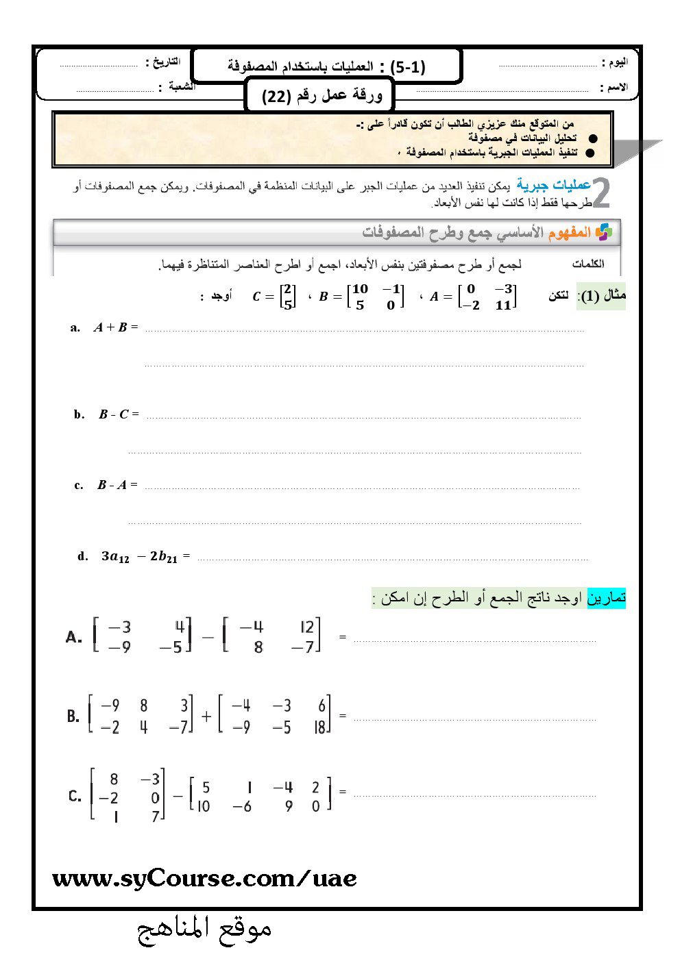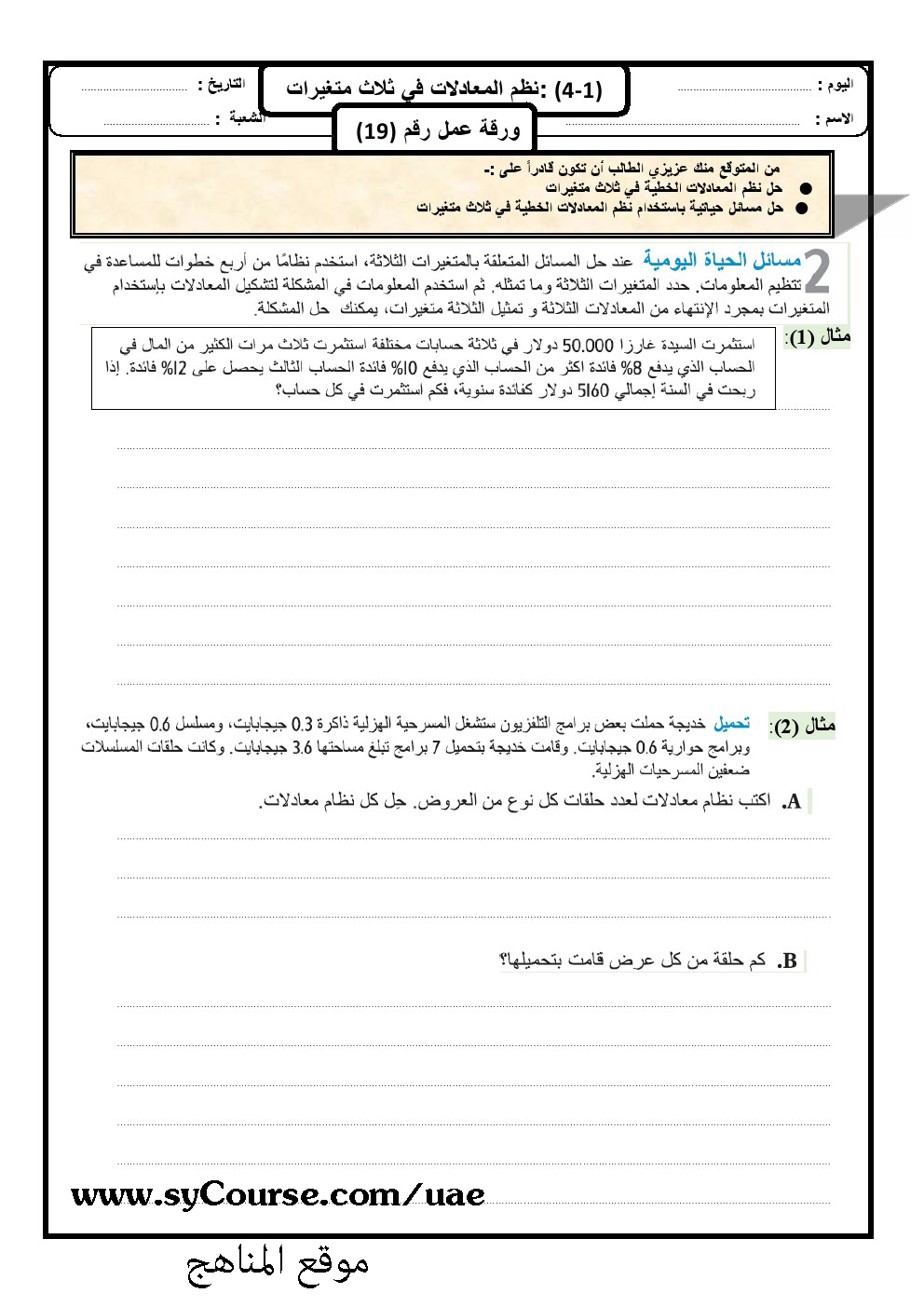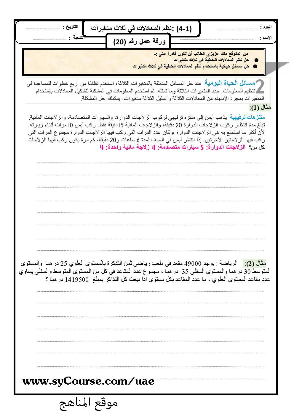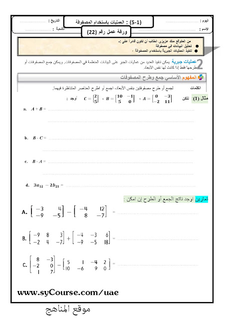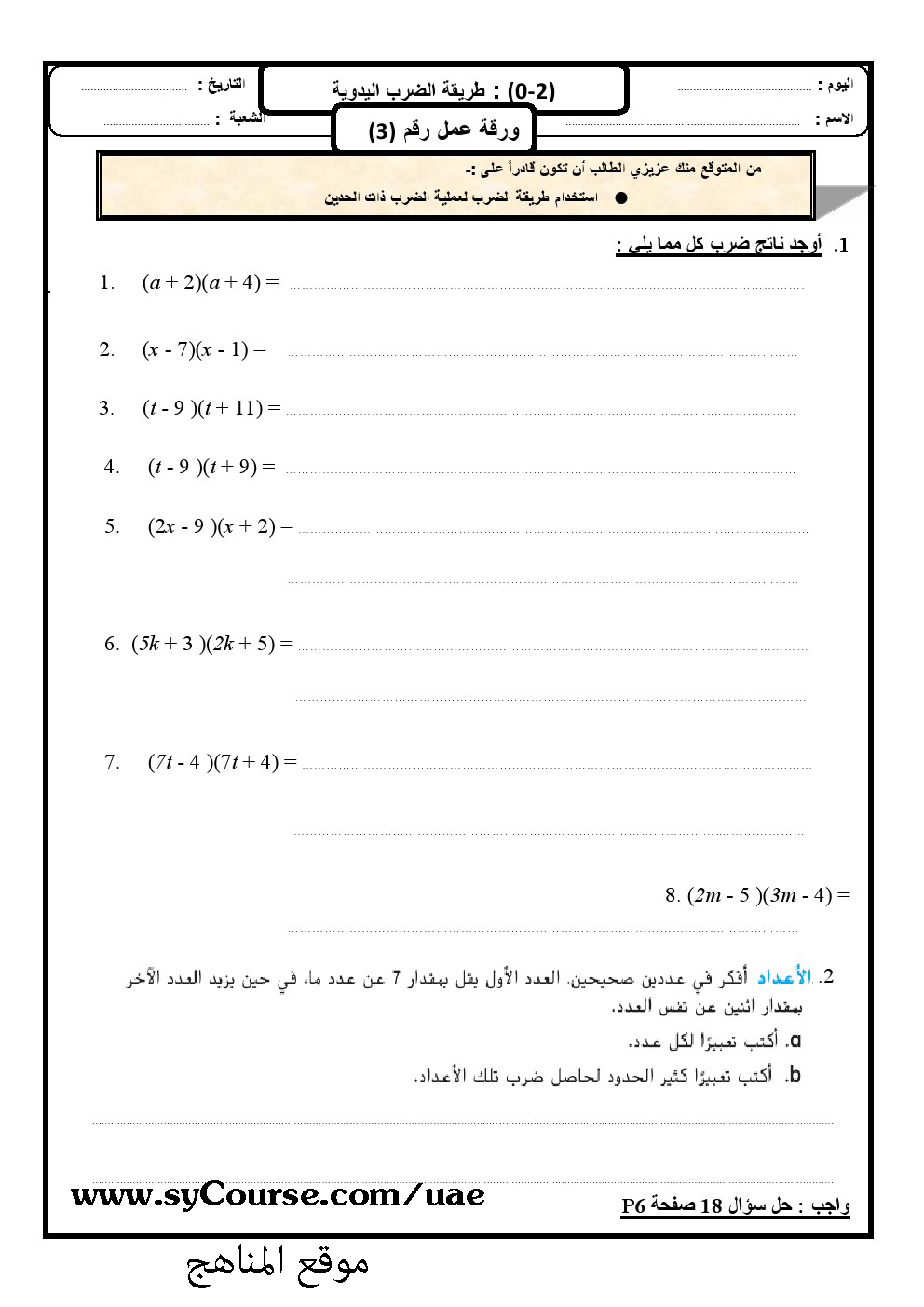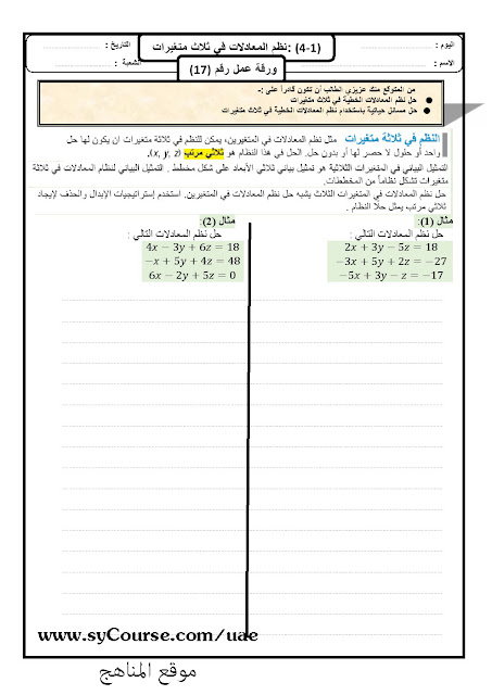 أنت هنا: موقع المناهج ⇦ المناهج الإماراتية ⇦ الصف العاشر المتقدم ⇦ رياضيات ⇦ الفصل الأول ⇦ أوراق عمل |