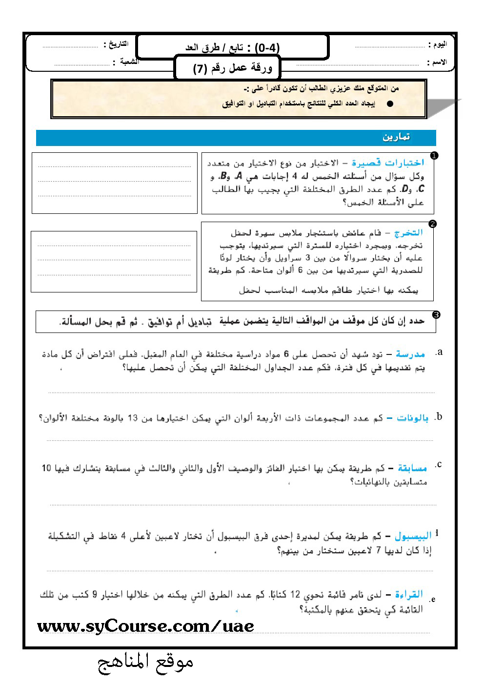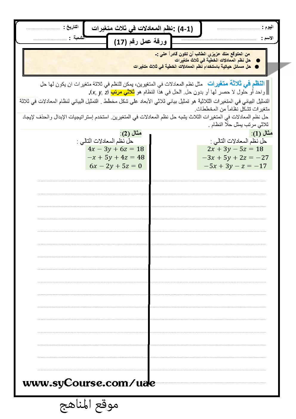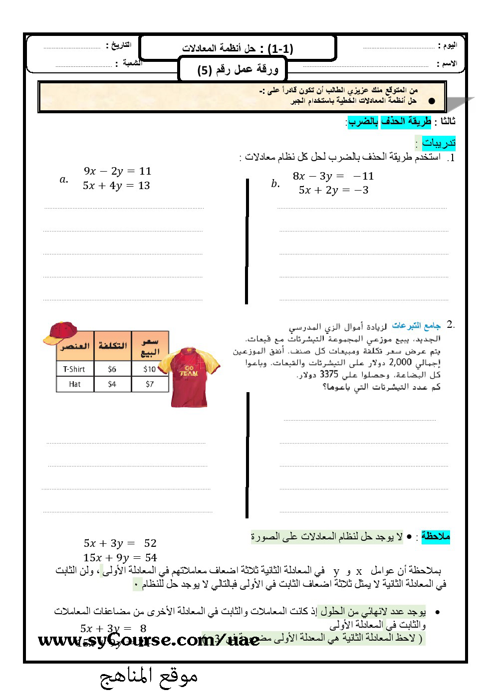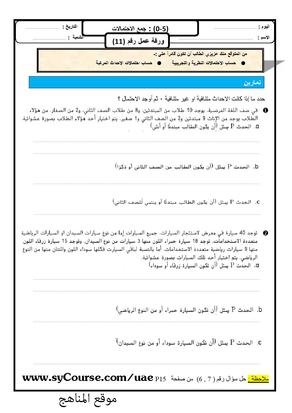 أنت هنا: موقع المناهج ⇦ المناهج الإماراتية ⇦ الصف العاشر المتقدم ⇦ رياضيات ⇦ الفصل الأول ⇦ أوراق عمل |
