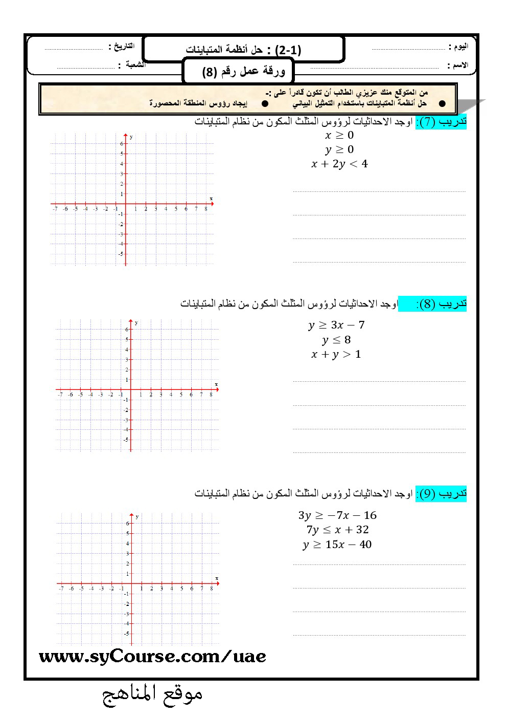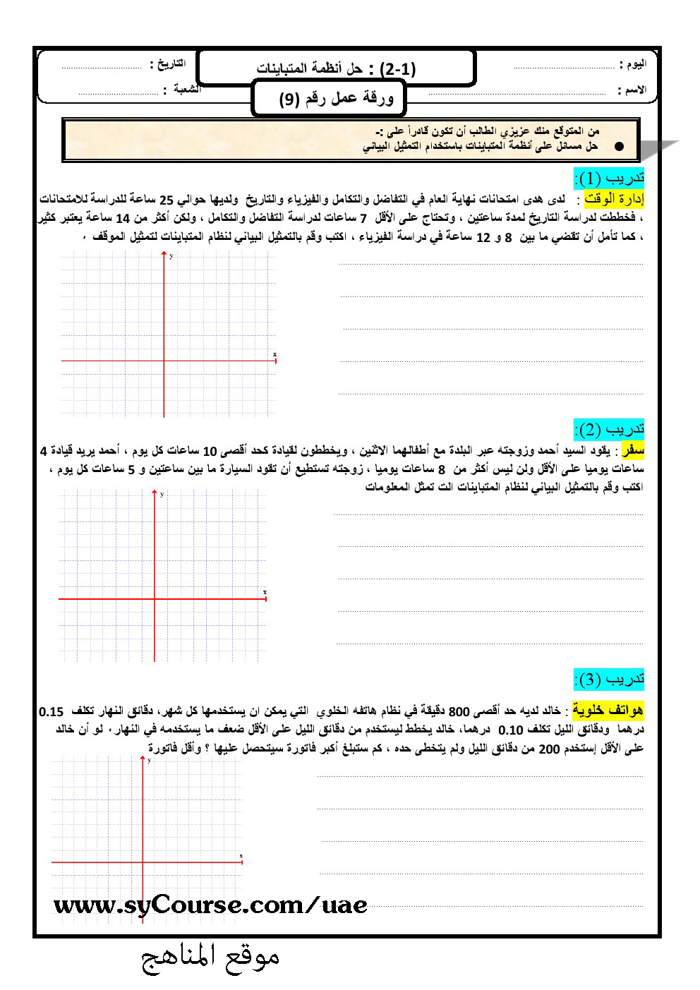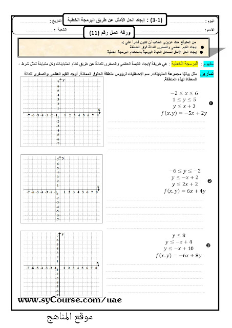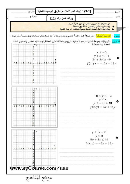 السابق: حل مسائل نظام المعادلات والمتباينات والبرمجة الخطية | الملف الحالي: 1541 | التالي: حل أوراق عمل الوحدة الثالثة كثيرات الحدود و الدوال كثيرة الحدود |