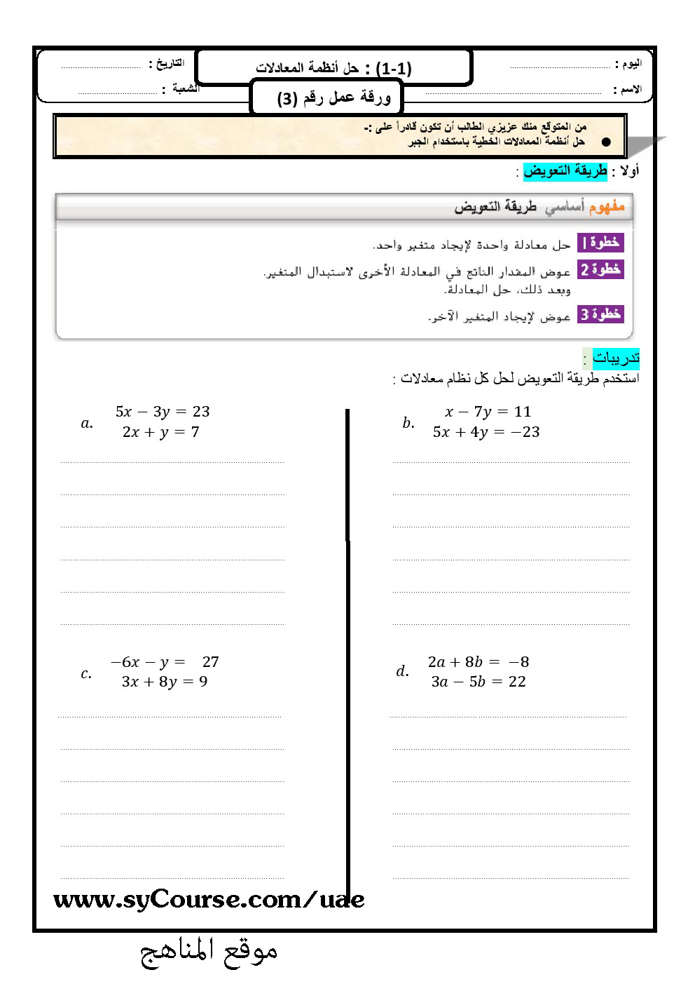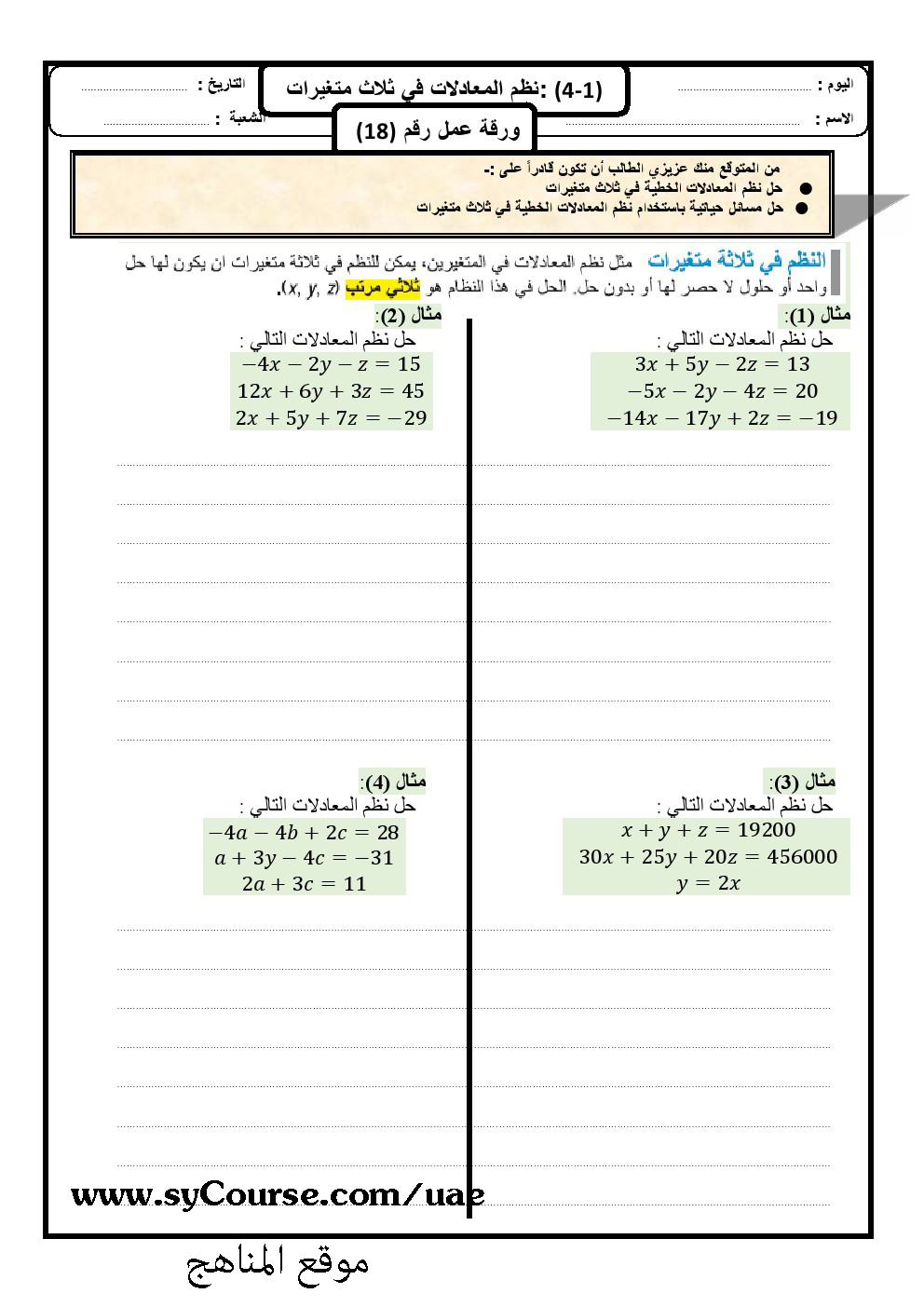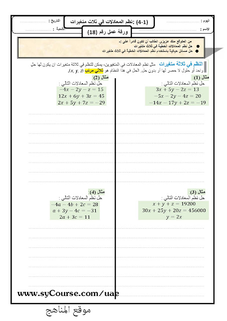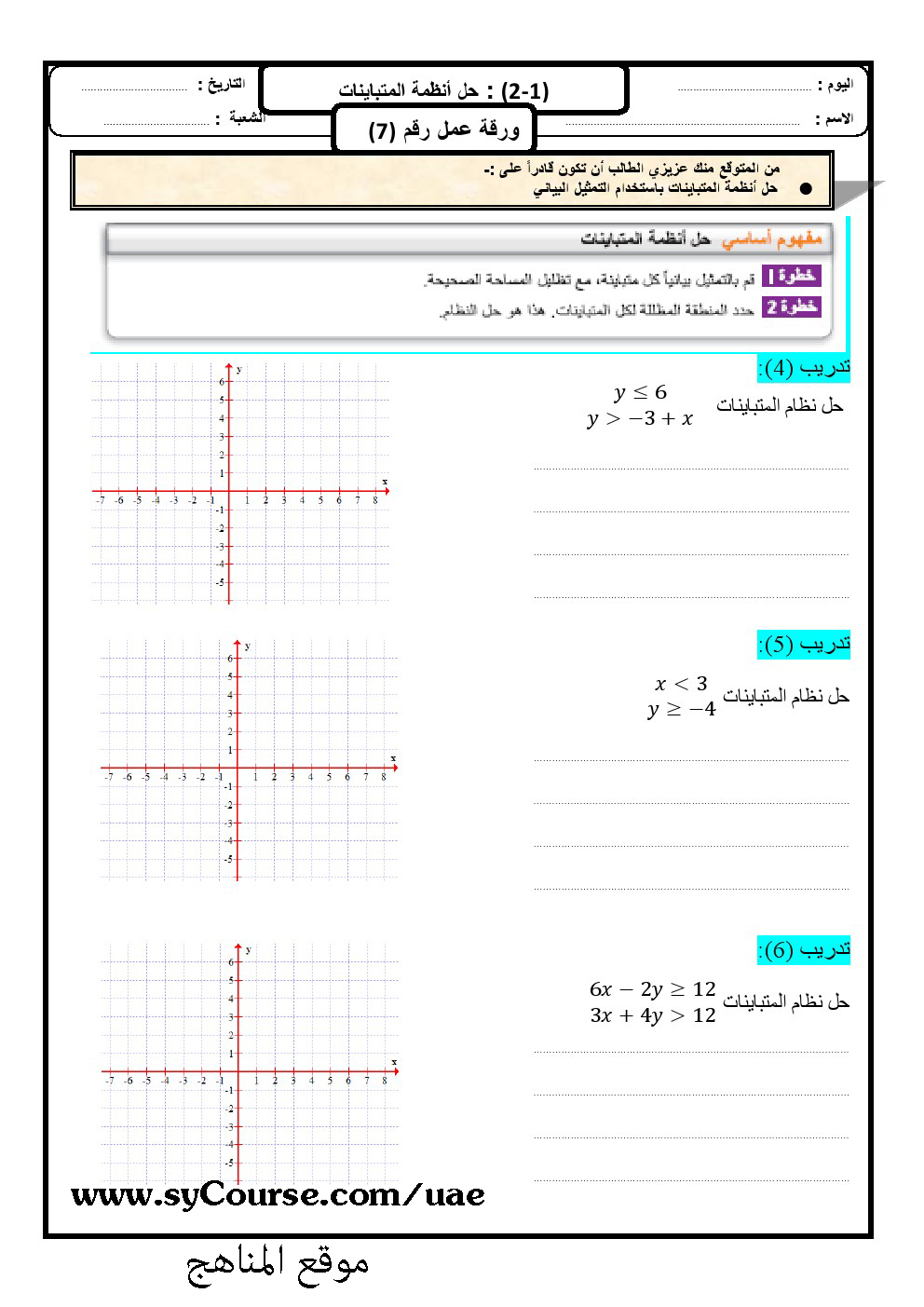 السابق: حل مسائل نظام المعادلات والمتباينات والبرمجة الخطية | الملف الحالي: 1541 | التالي: حل أوراق عمل الوحدة الثالثة كثيرات الحدود و الدوال كثيرة الحدود |