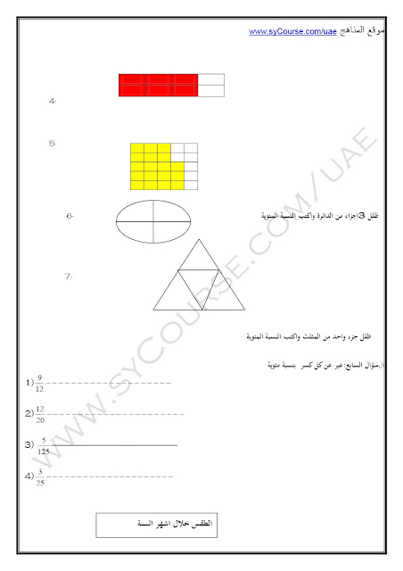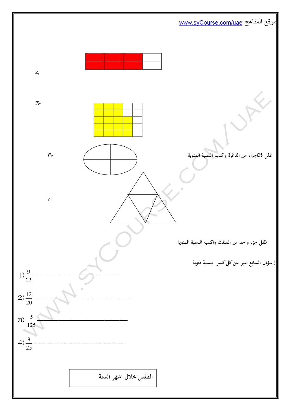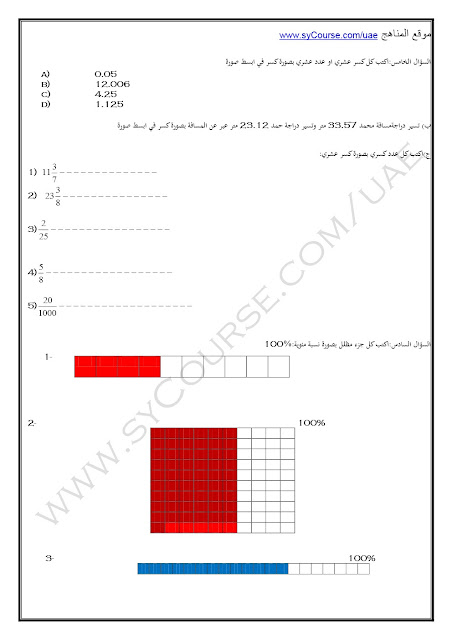 1. أوراق عمل مراجعة الكسور والأعداد العشرية