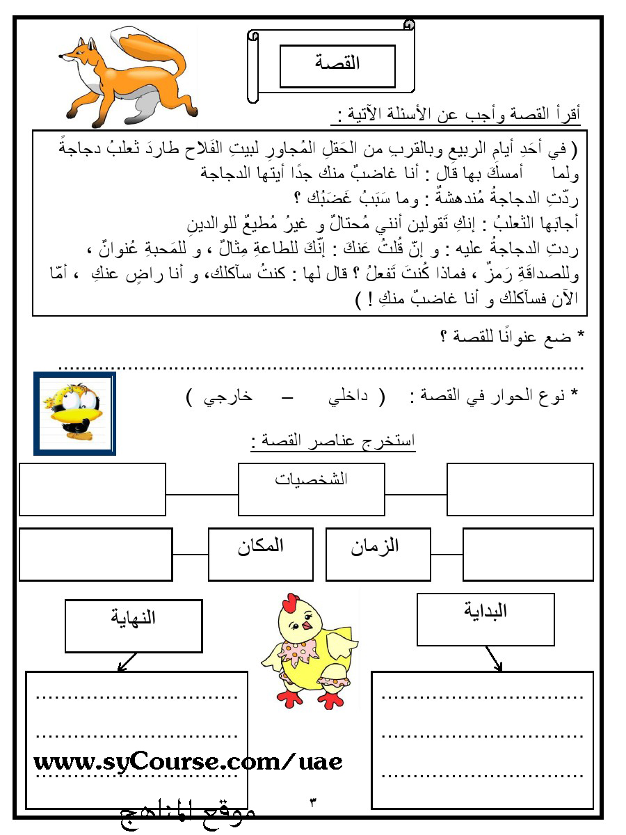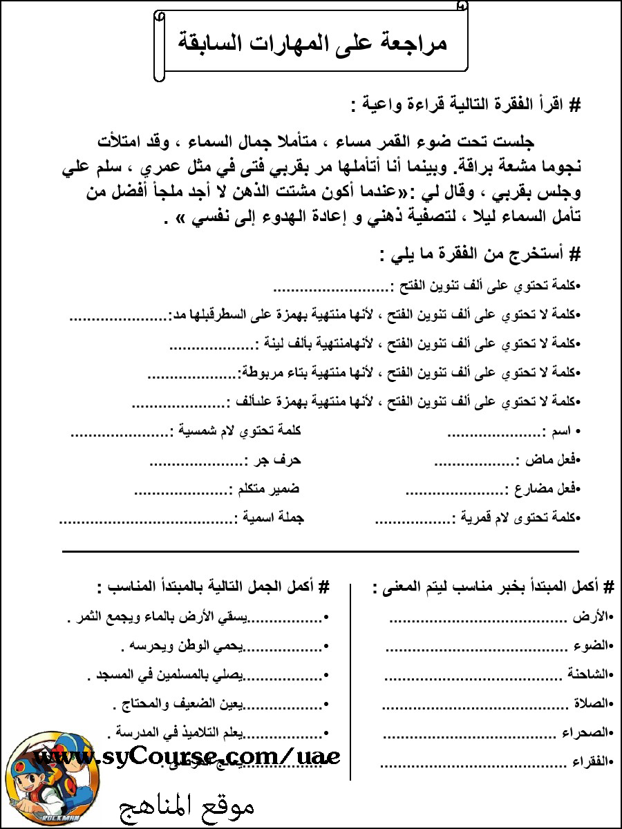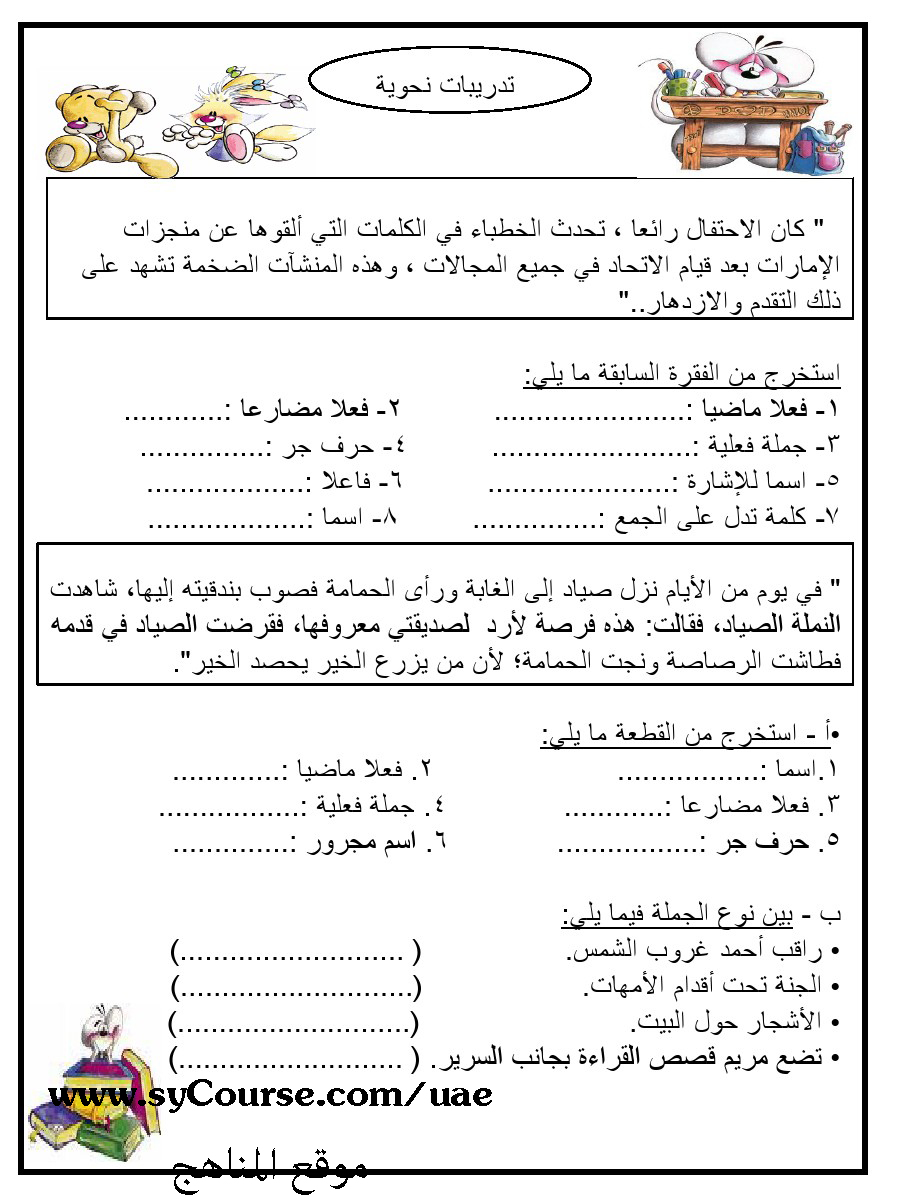 الصف الرابع, الفصل الأول, لغة عربية, مذكرة الوحدتين الأولى والثانية 2016-2017