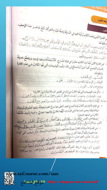 الصف الحادي عشر, الفصل الأول, لغة عربية, إجابة أسئلة درس يوم العيد 2016-2017