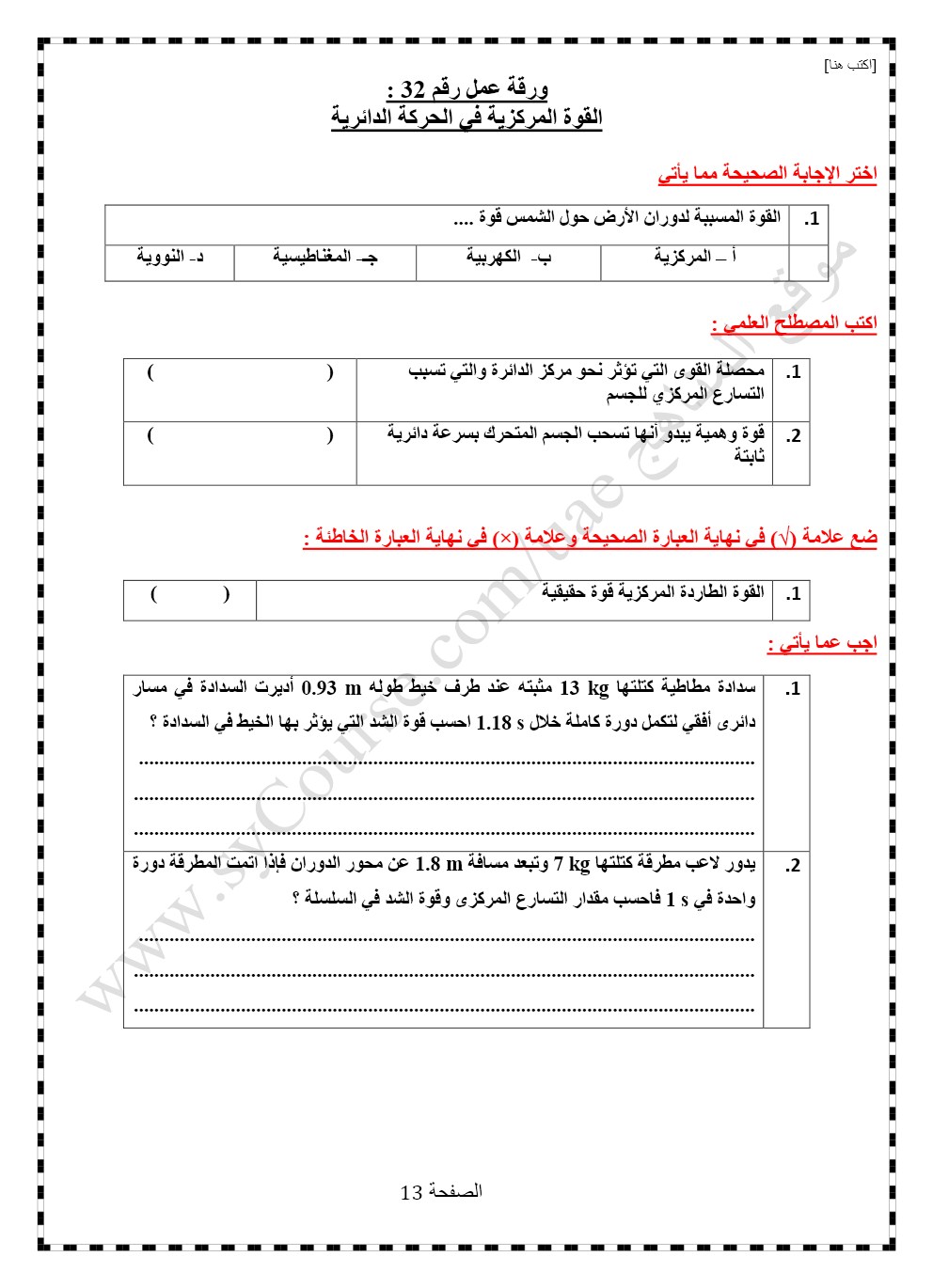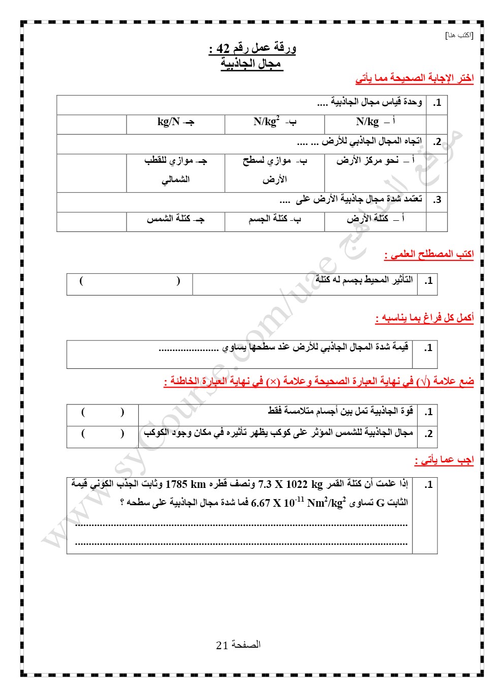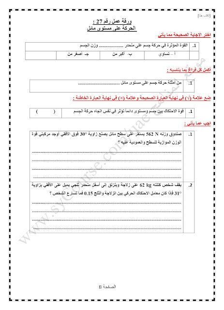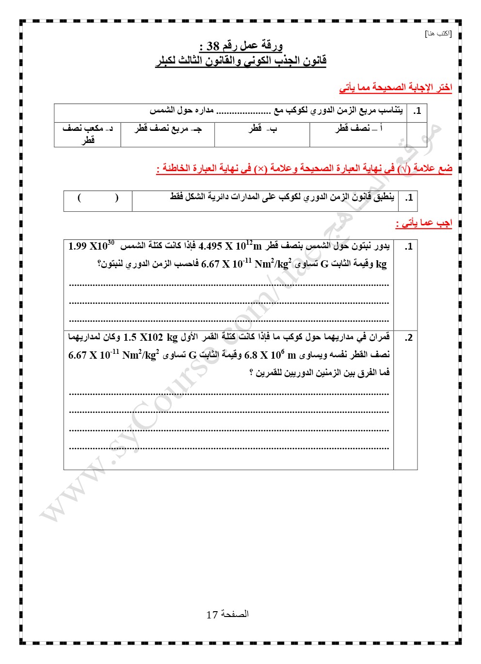 معلومات الملف: الصف الحادي عشر المتقدم, الفصل الأول, فيزياء, أسئلة وأوراق عمل شاملة 2016-2017