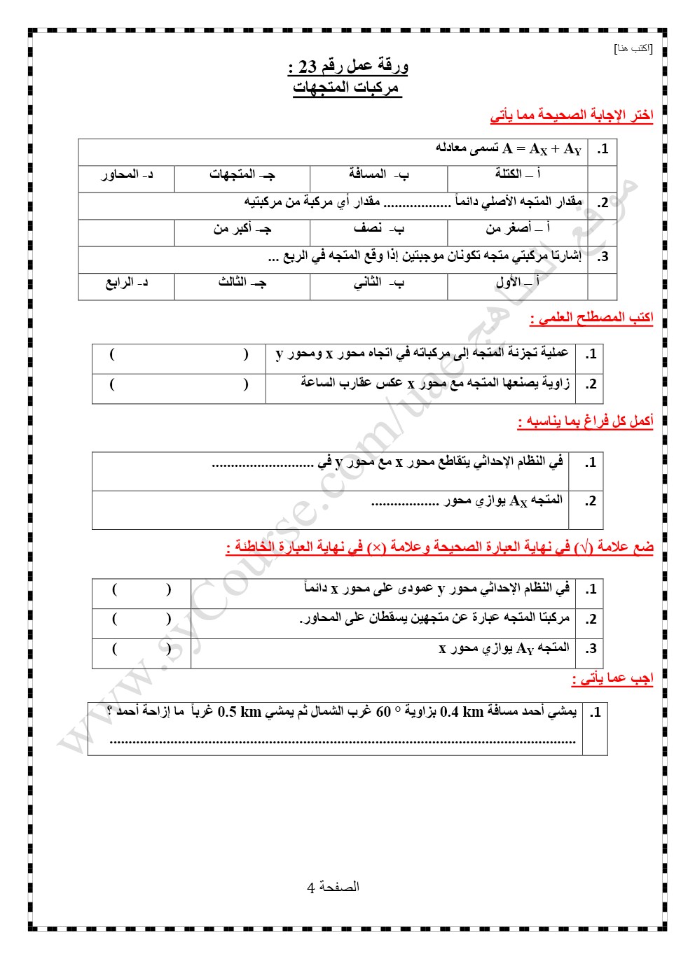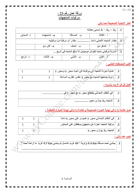 7. ملخص وتدريبات الدرس السادس المتجهات من الوحدة الأولى
