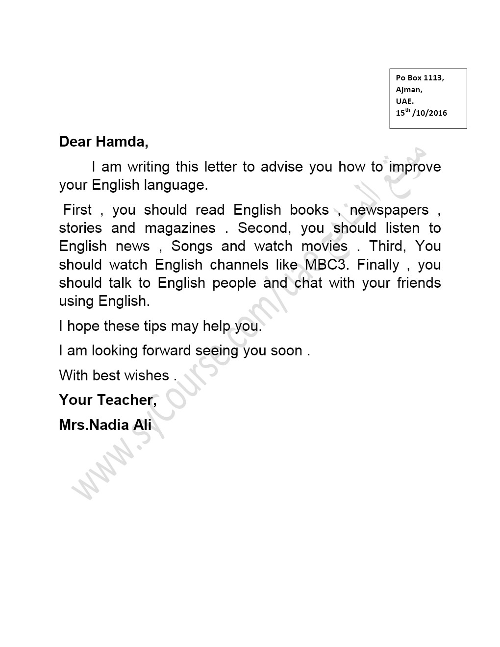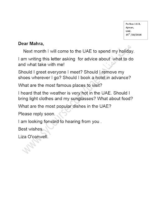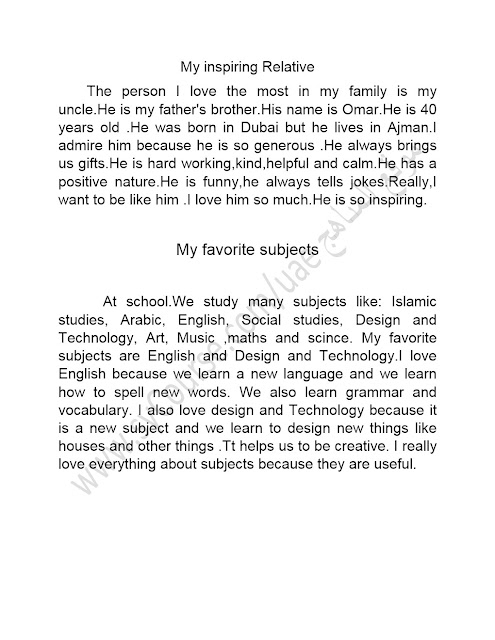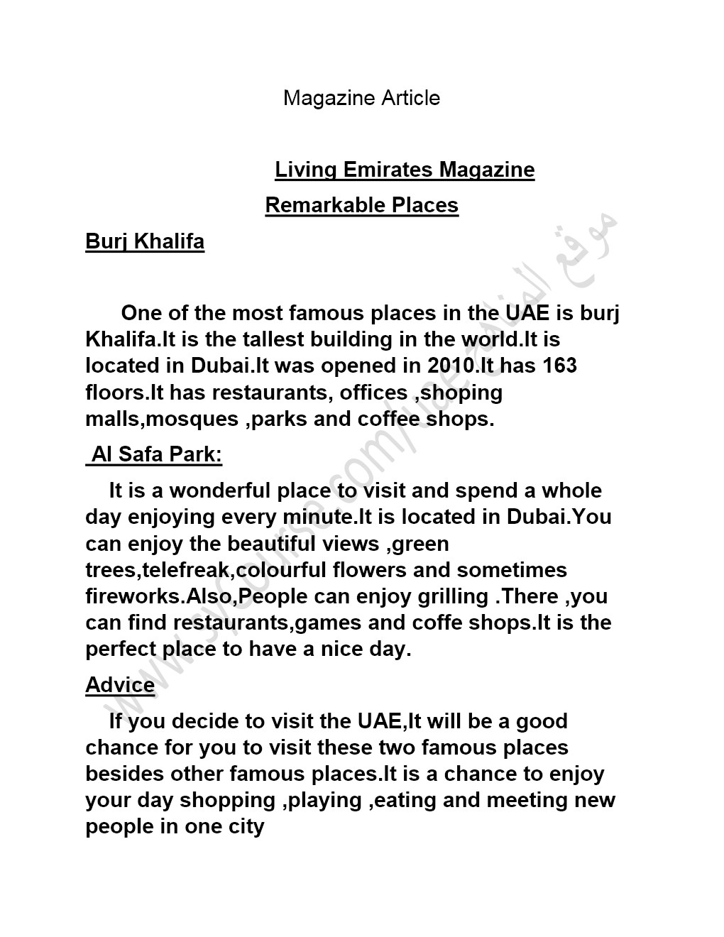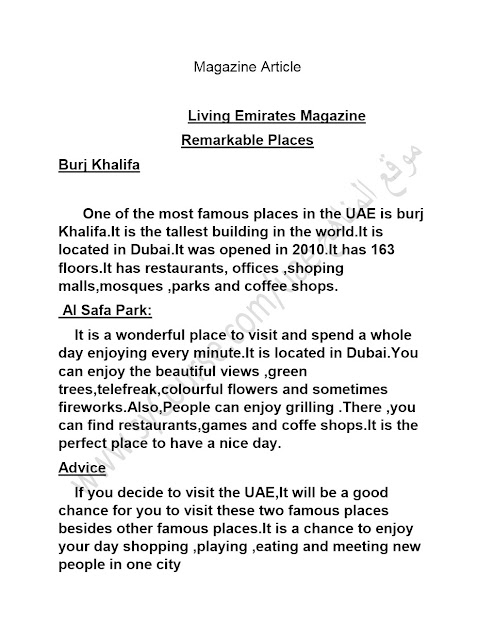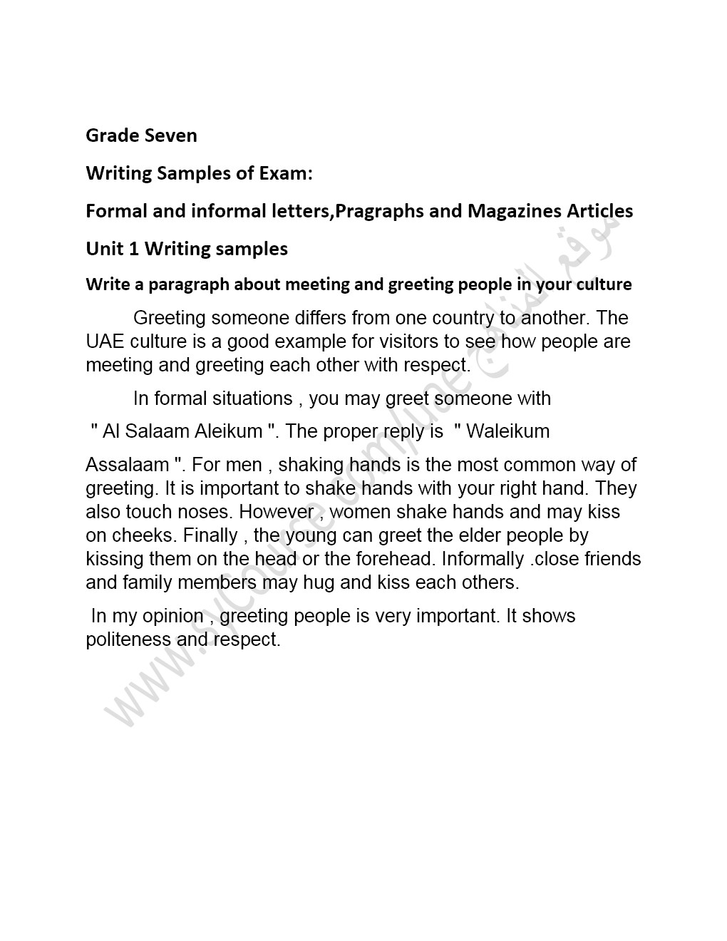 Writing samples نماذج امتحانية للصف السابع في اللغة الانكليزية وفق المنهاج الاماراتي الحديث للعام الدراسي 2016-2017