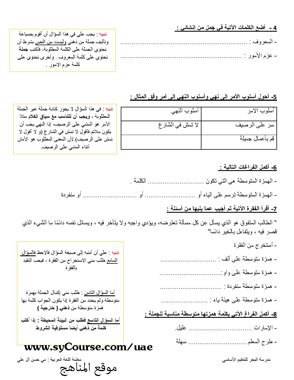 3. الصف الخامس, لغة عربية, مذكرة موضوعات الكتابة الإقناعية والسردية