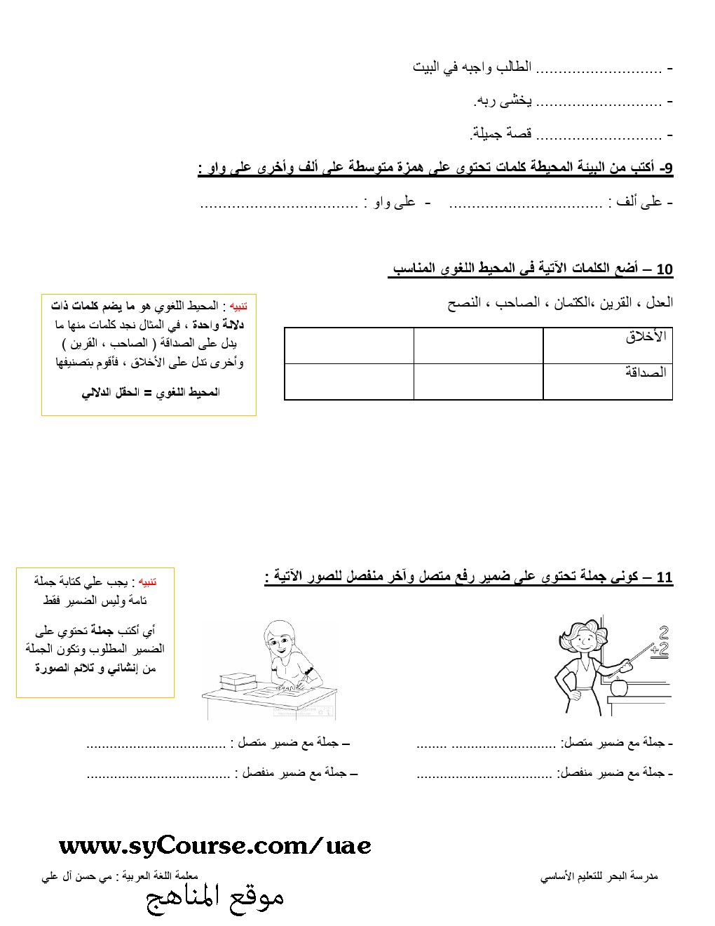 3. الصف السادس, لغة عربية, حل مراجعة عامة وفق الهيكل الوزاري الجديد القسم الالكتروني