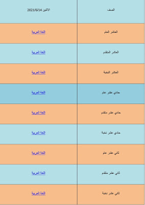 إليكم كل ما يخص مادتي اللغة العربية لاختبار نهاية الفصل الثالث يوم الإثنين من العاشر للثاني عشر: اختر ما يناسبك من الجدول أدناه: