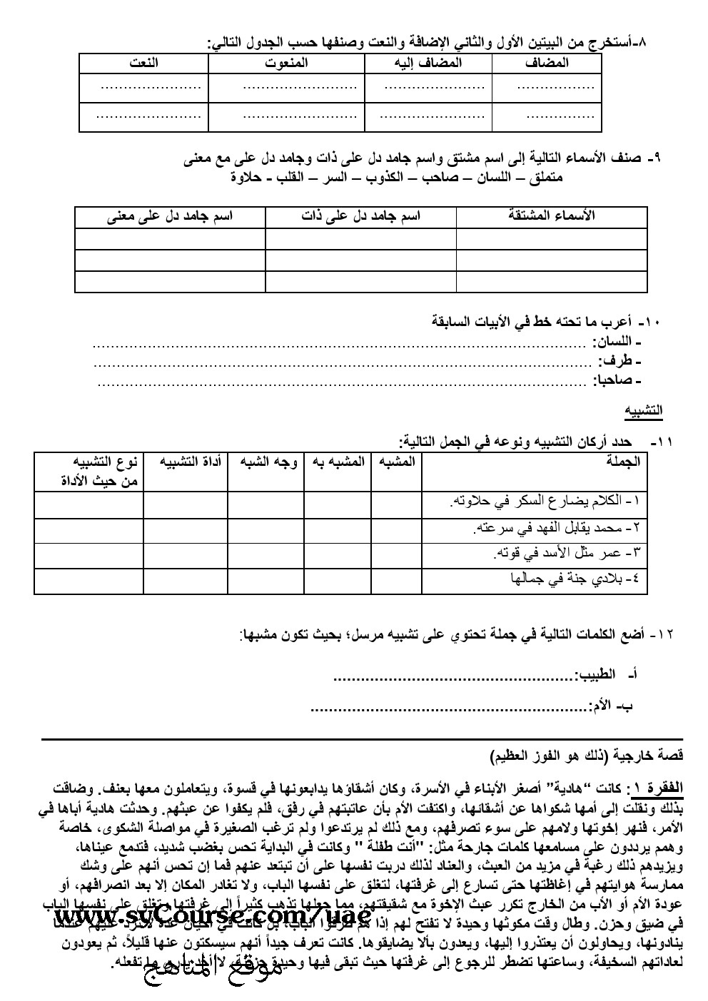 معلومات الملف: الصف الخامس, الفصل الأول, لغة عربية, امتحان تجريبي 2016-2017 | ||
