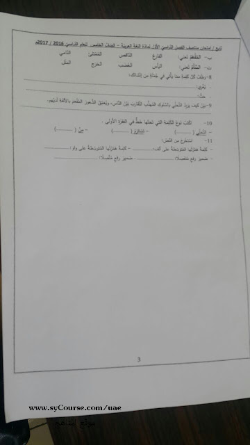 معلومات الملف: تحتوي الصور المرفقة على امتحان منتصف الفصل الدراسي 2016~2017م في مادة اللغة العربية للصف الخامس الابتدائي. | ||