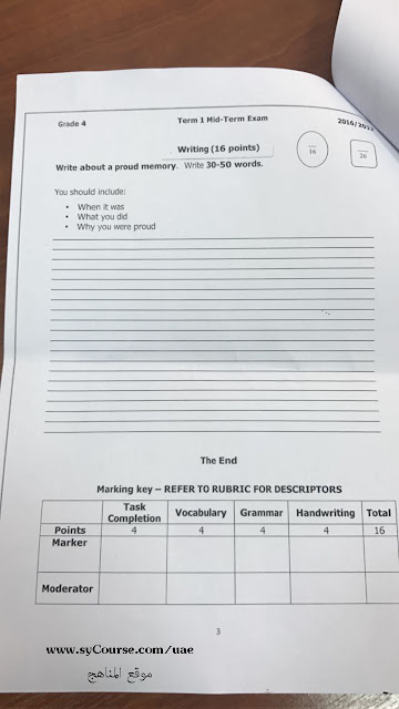 الصف الرابع, الفصل الأول, لغة انكليزية, الامتحان الوزاري 24-10-2016
