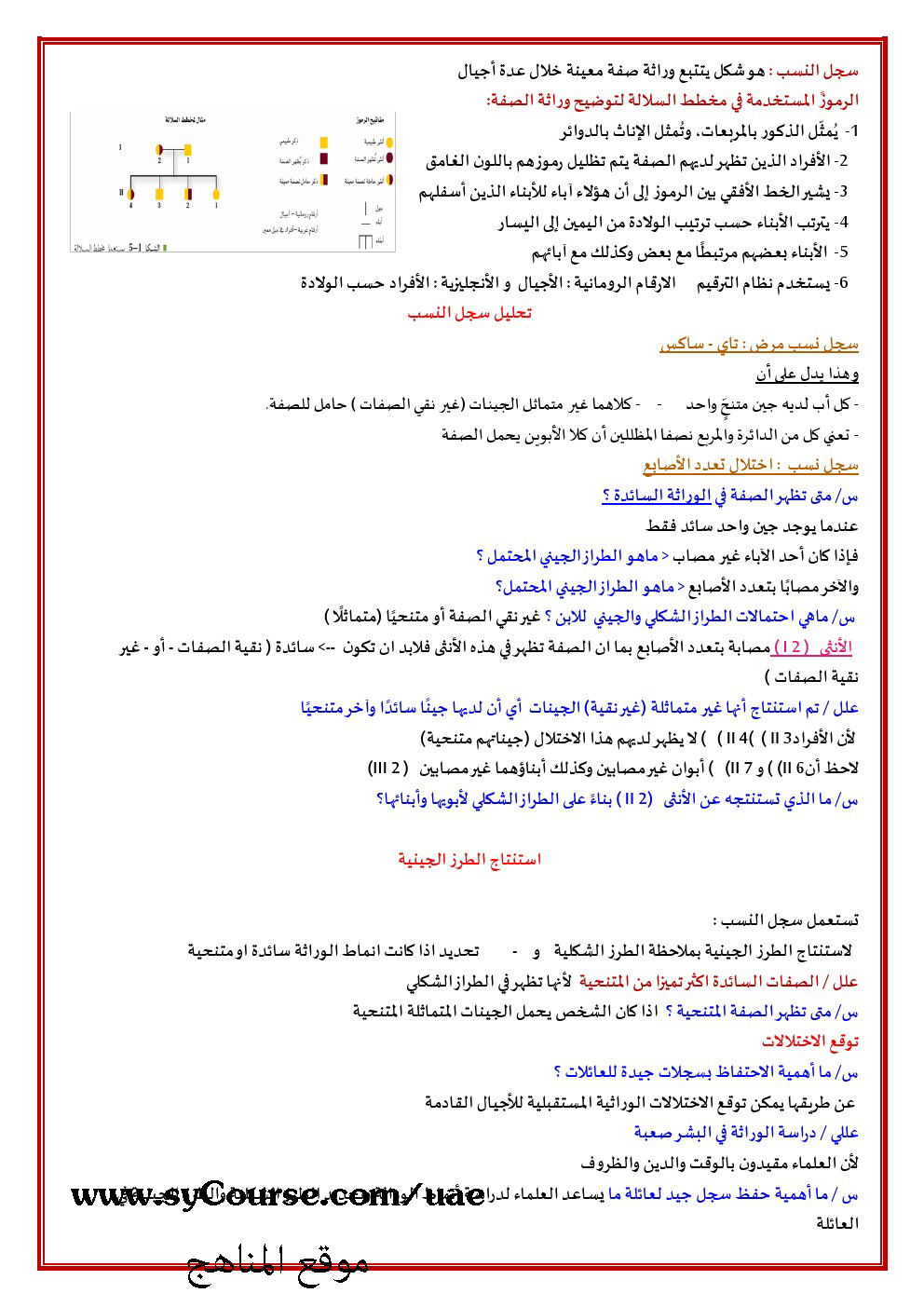 معلومات الملف: الصف الثاني عشر متقدم, الفصل الأول, علوم, الوحدة التاسعة: الوراثة المعقدة والوراثة البشرية 2016-2017 | ||