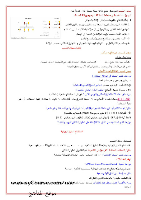متقدم الوحدة التاسعة: الوراثة المعقدة والوراثة البشرية | ||