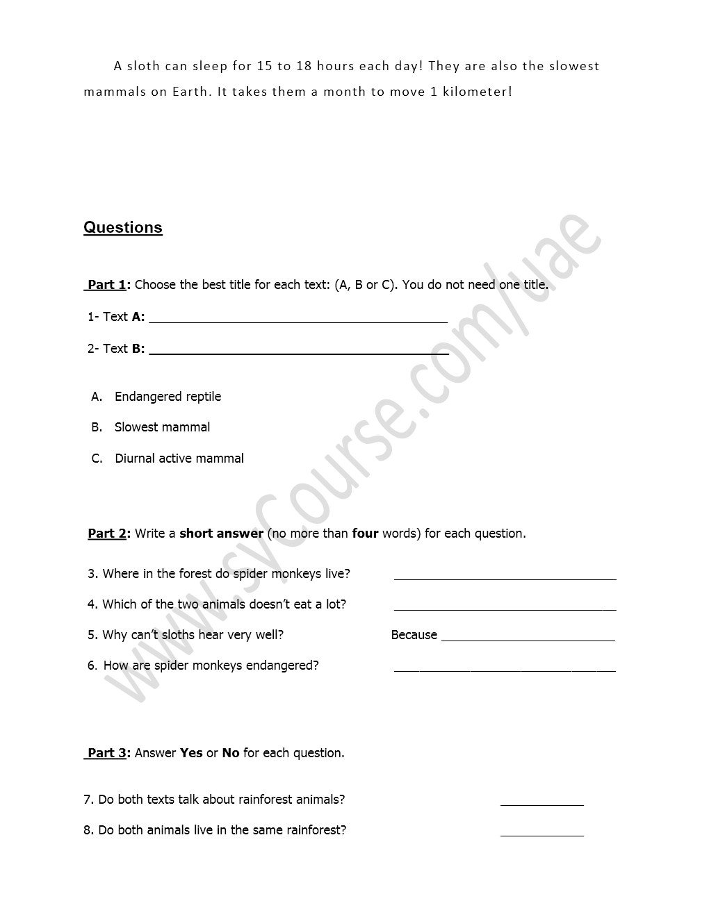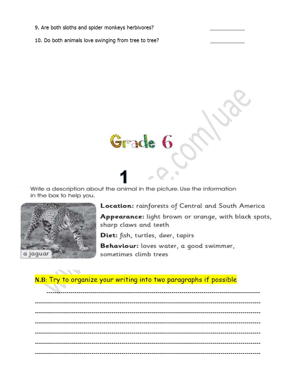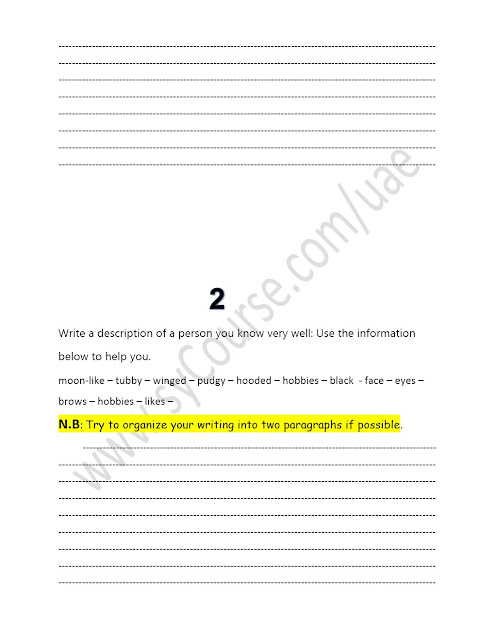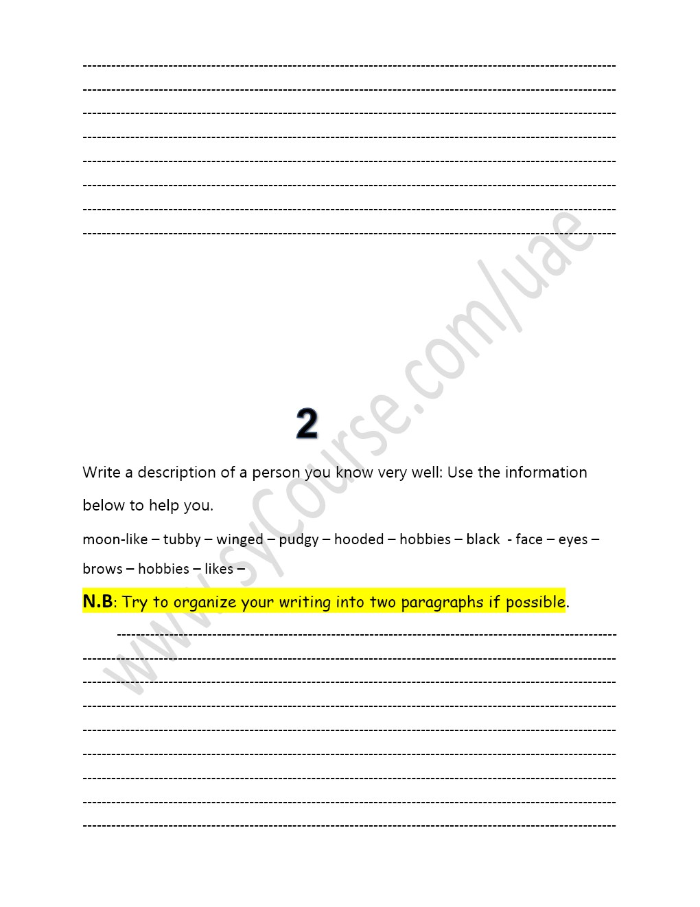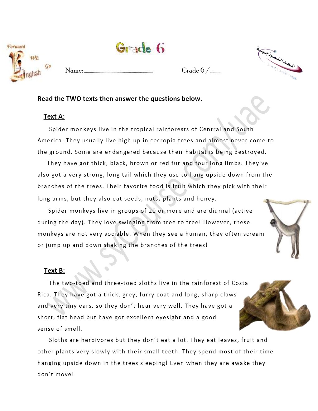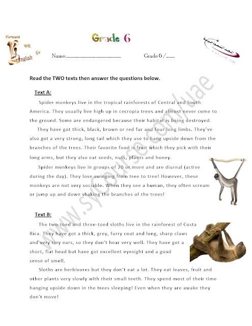 الصف السادس, الفصل الأول, لغة انكليزية, نموذج امتحاني 2016-2017 المنهاج الاماراتي