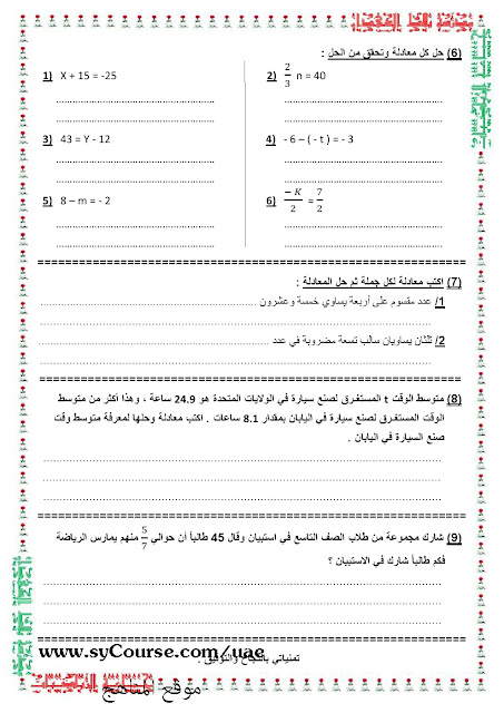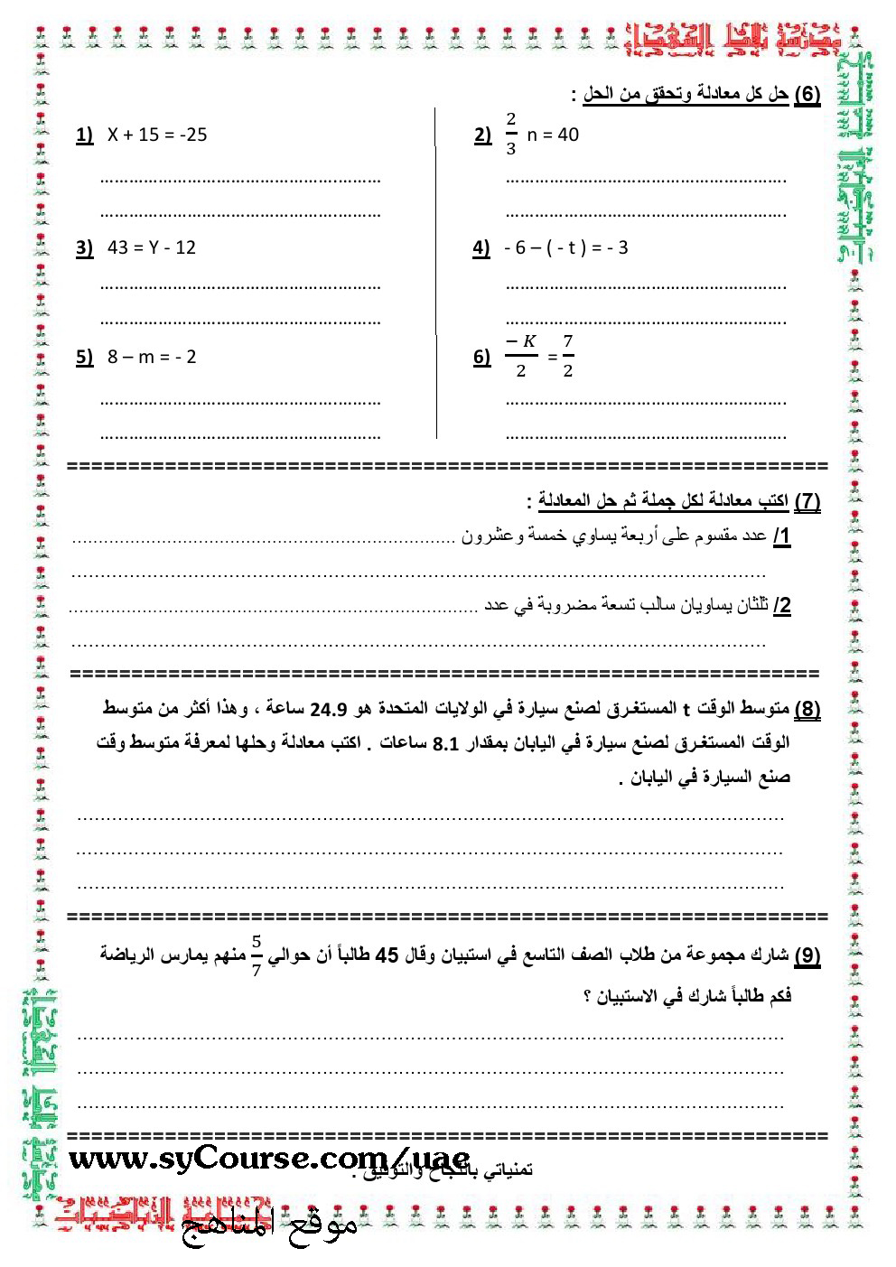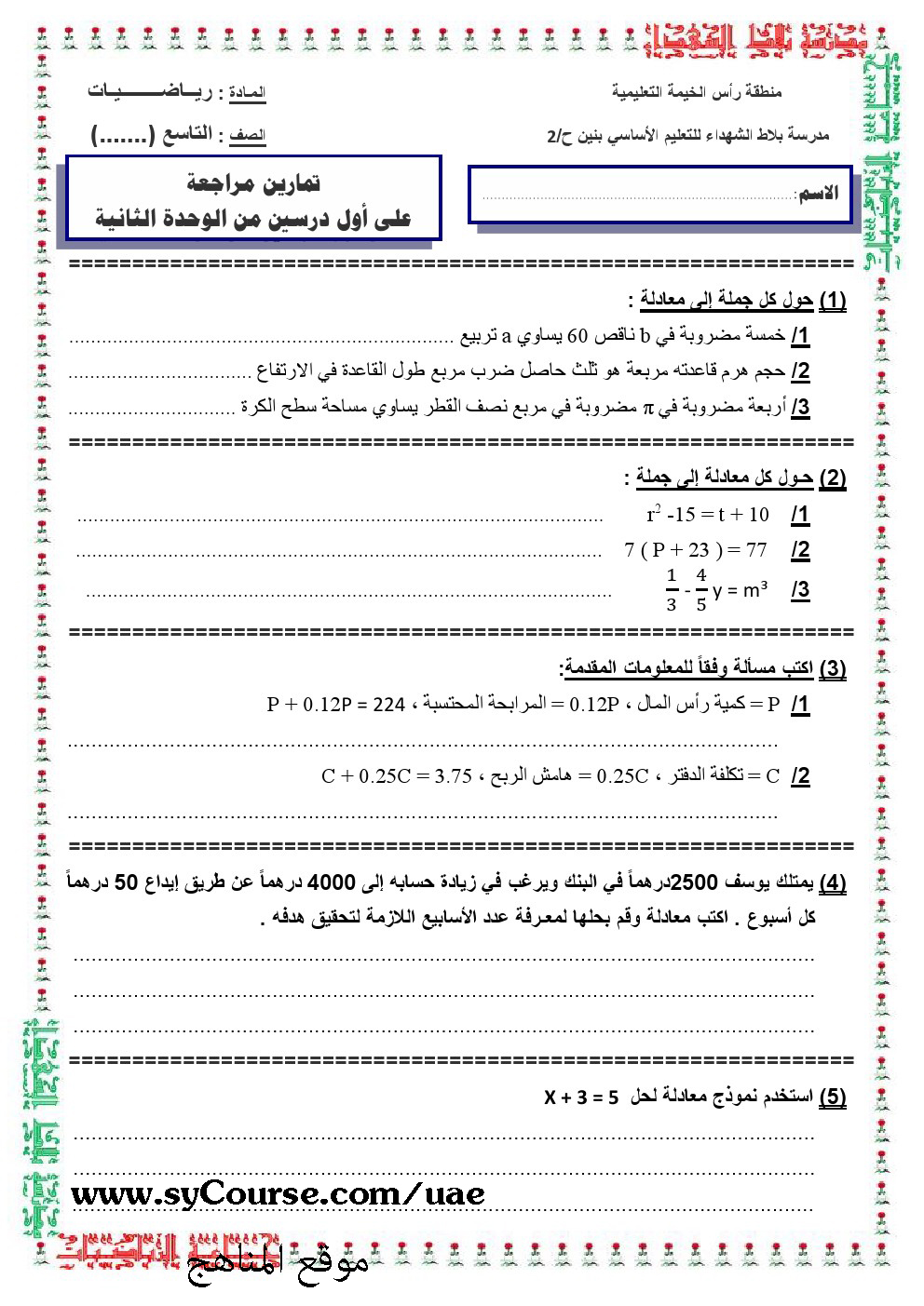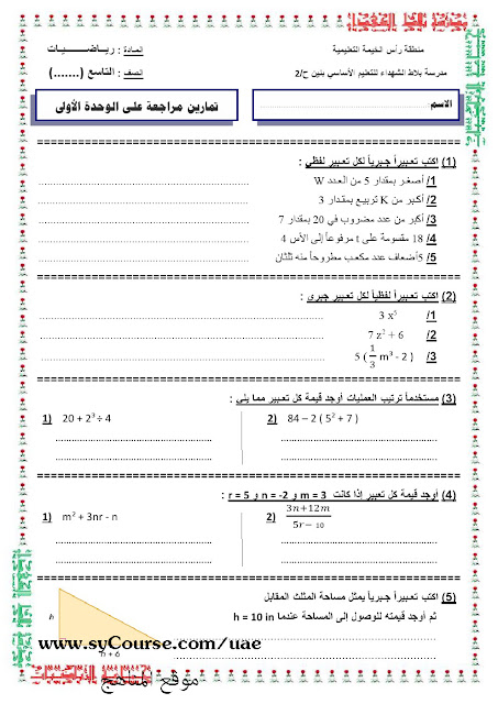 الصف التاسع, الفصل الأول, رياضيات- مراجعة قبل الامتحان l 2016-2017
