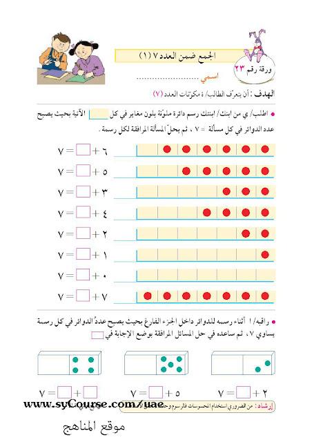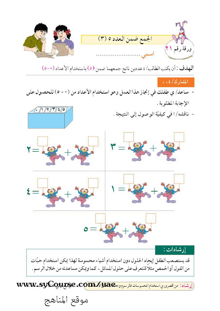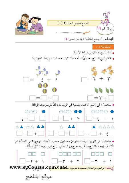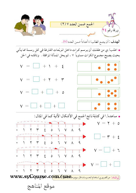 الصف الأول, رياضيات , أوراق عمل هامة وجاهزة للطباعة 2018-2017 - المنهاج الاماراتي الحديث