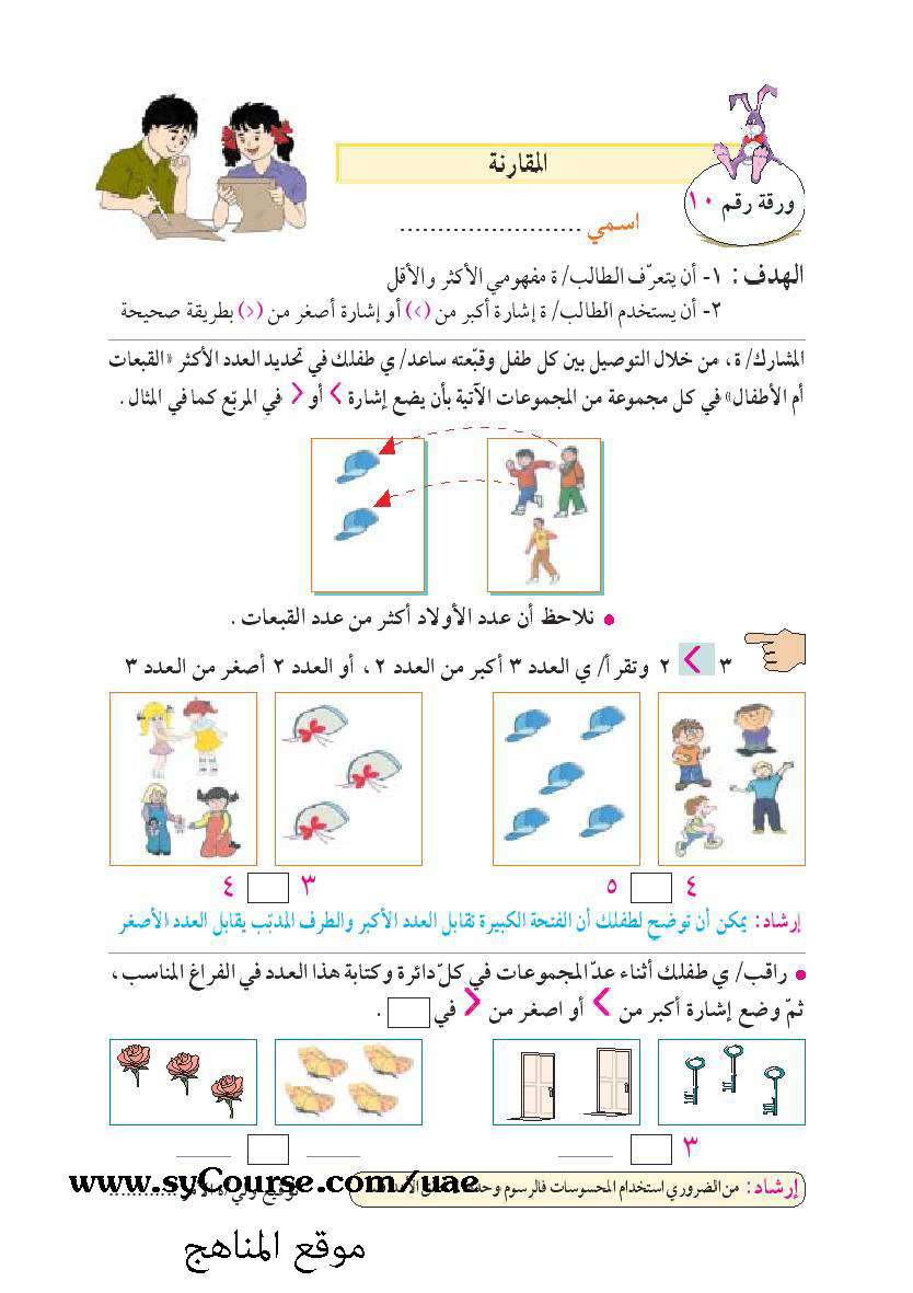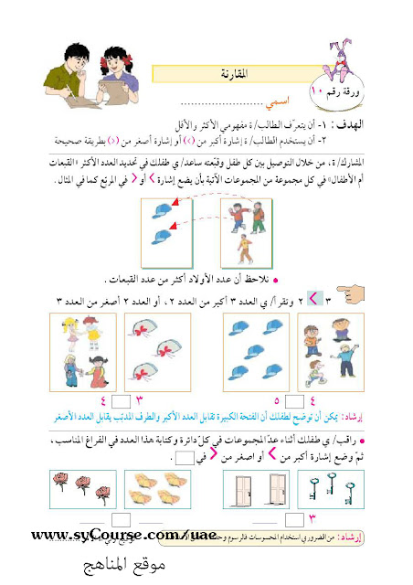 أوراق عمل حول الأعداد ومقارنتها والجمع وجاهزة للطباعة | ||