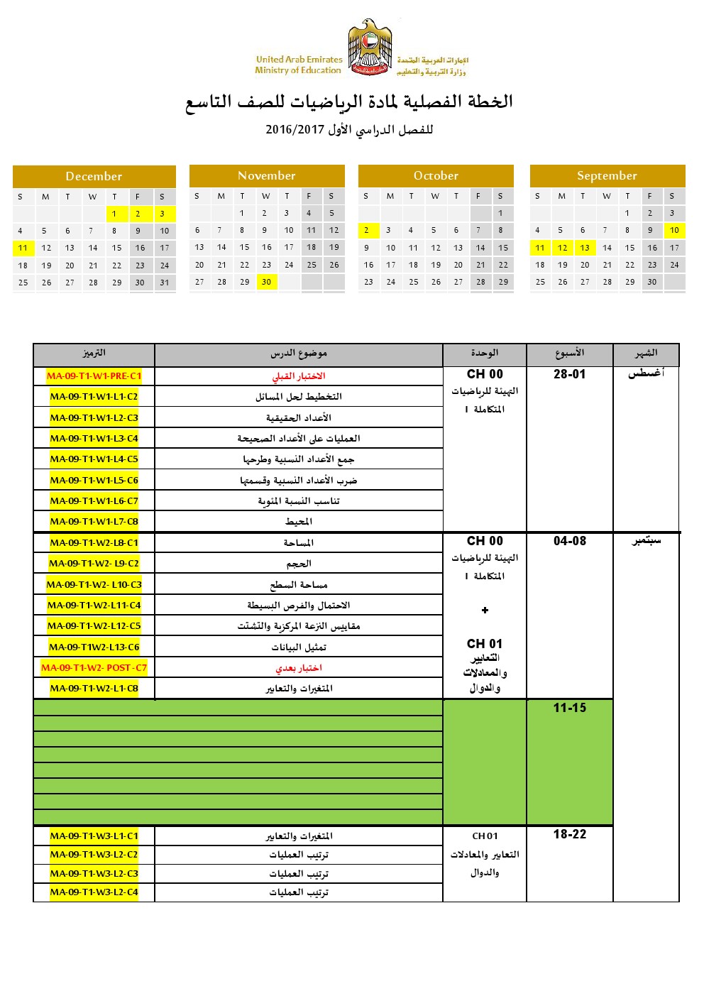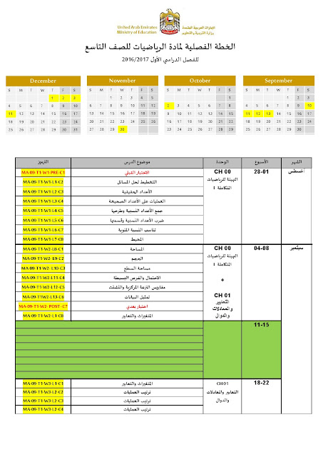 معلومات الملف: الصف التاسع, الفصل الأول, رياضيات, الخطة الفصلية لمادة الرياضيات للصف التاسع 2016-2017 | ||
