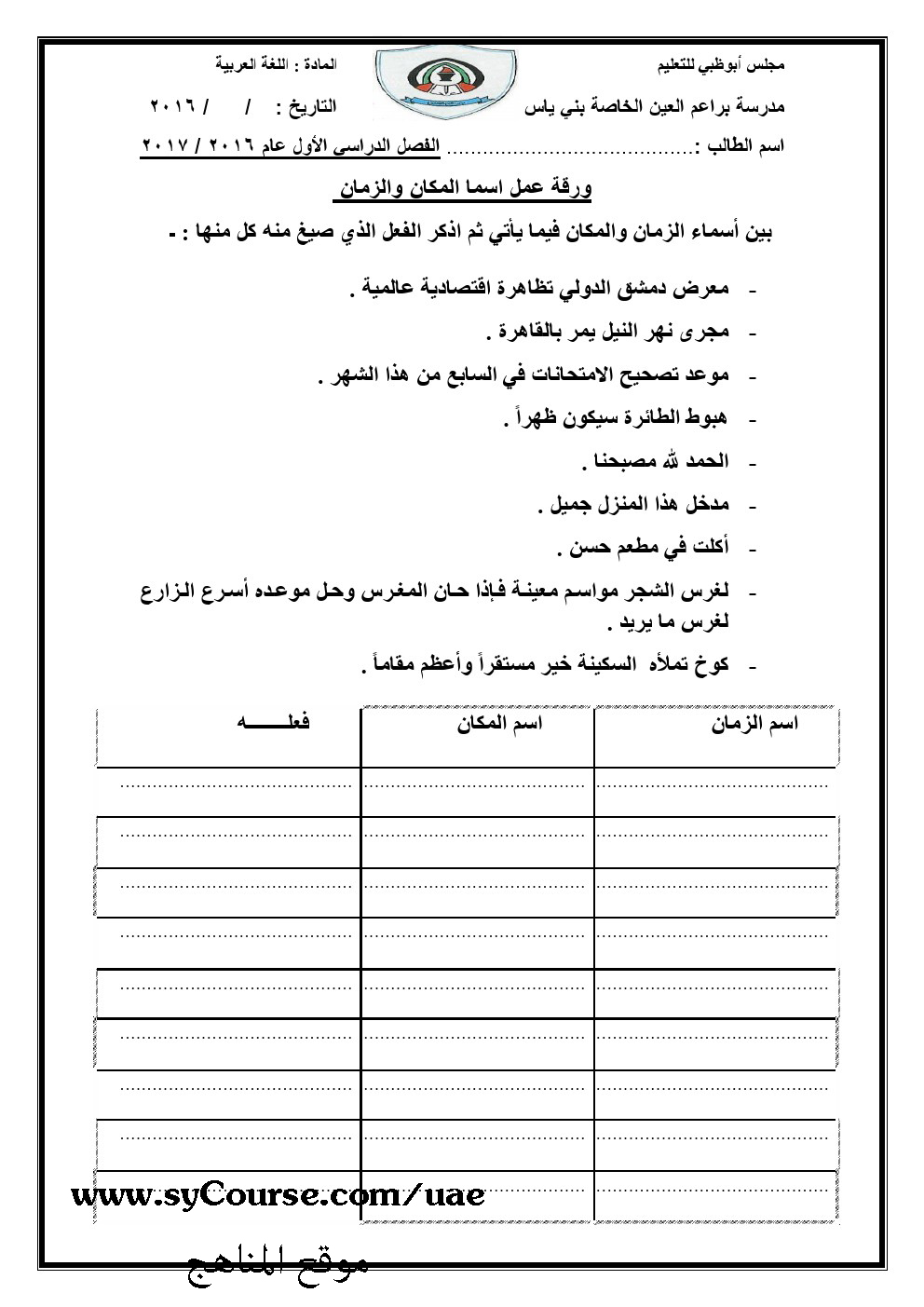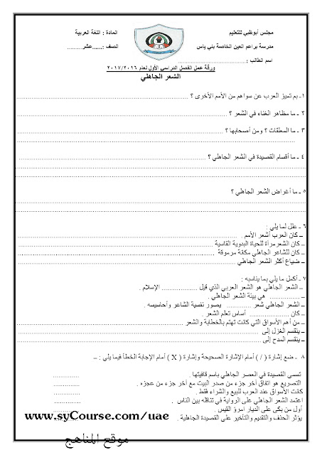 | المادة: لغة عربية | ||