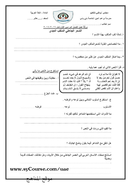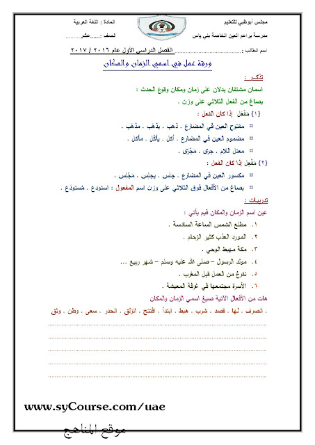 معلومات الملف: الصف الحادي عشر, الفصل الأول, لغة عربية, مذكرة 2016-2017 | ||