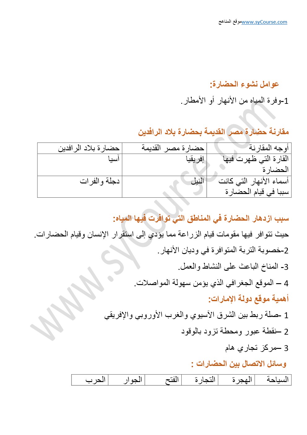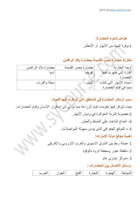 مراجعة درس الحضارة تعريف الحضارةـ عوامل نشوء ـ سبب ازدهار | ||