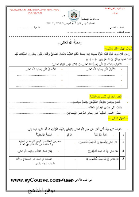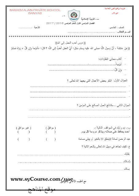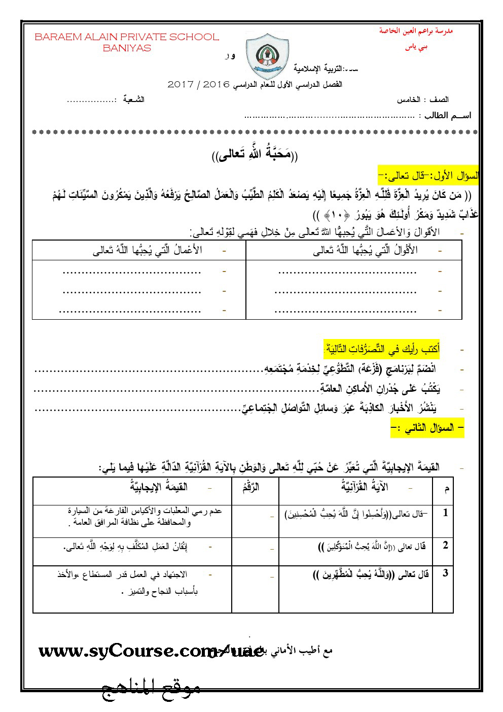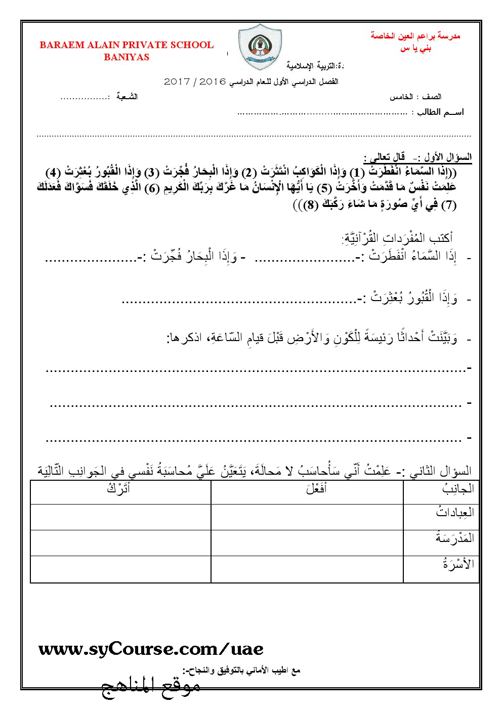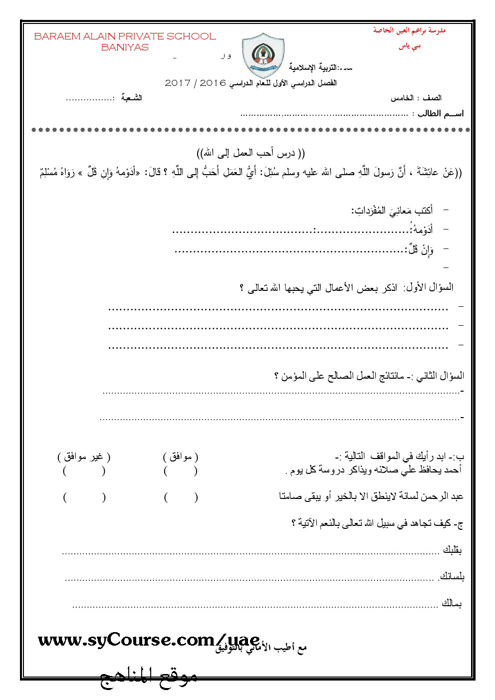 معلومات الملف: الصف الخامس, الفصل الأول, تربية اسلامية, أوراق عمل 2016-2017 | ||