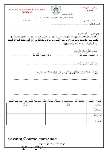 يقدم لكم موقع المناهج مراجعة في مادة التربية الاسلامية للصف الخامس وفق المنهاج الاماراتي الحديث وذلك للفصل الأول من العام الدراسي 2016-2017 |