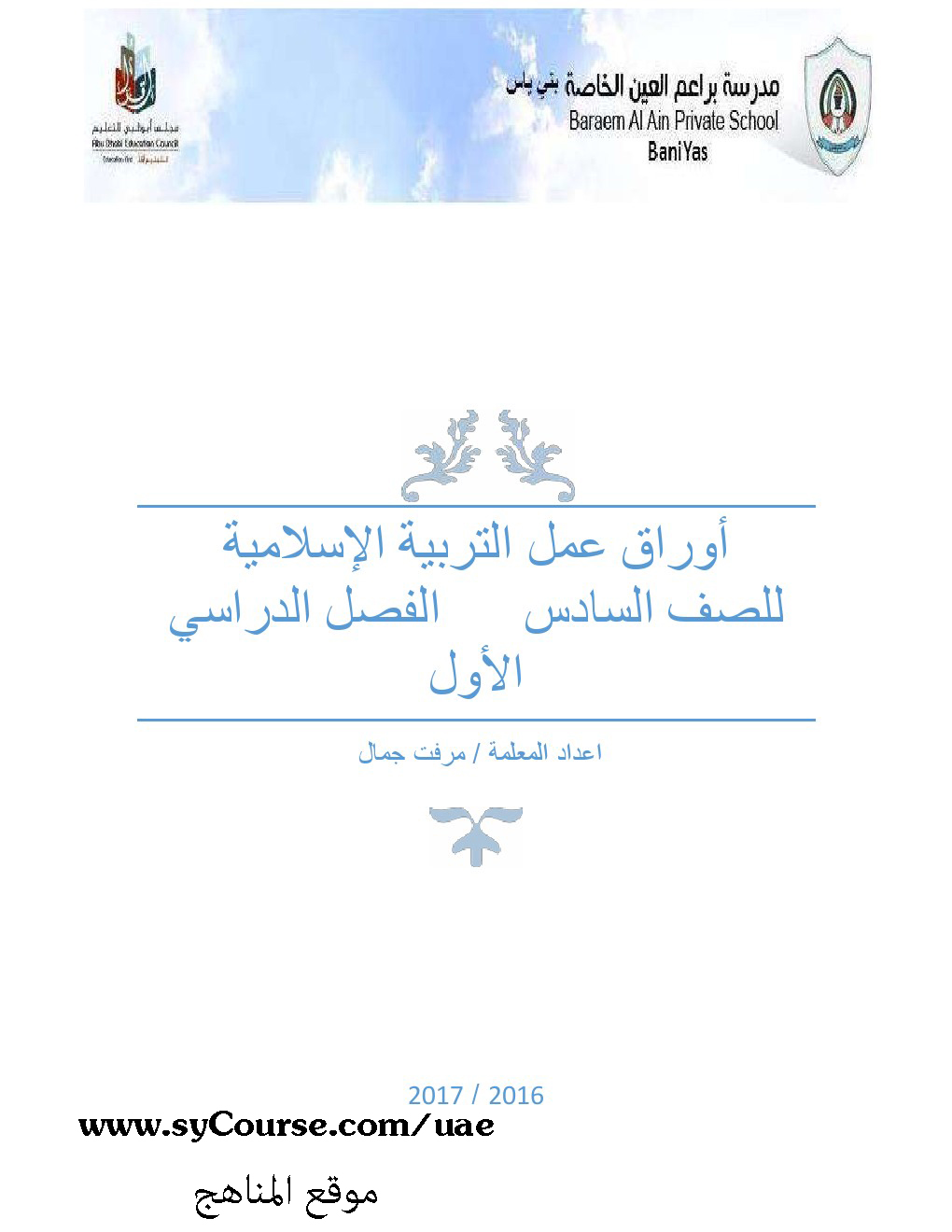 معلومات الملف: الصف السادس, الفصل الأول, تربية اسلامية, عشرة أوراق عمل 2016-2017 | ||