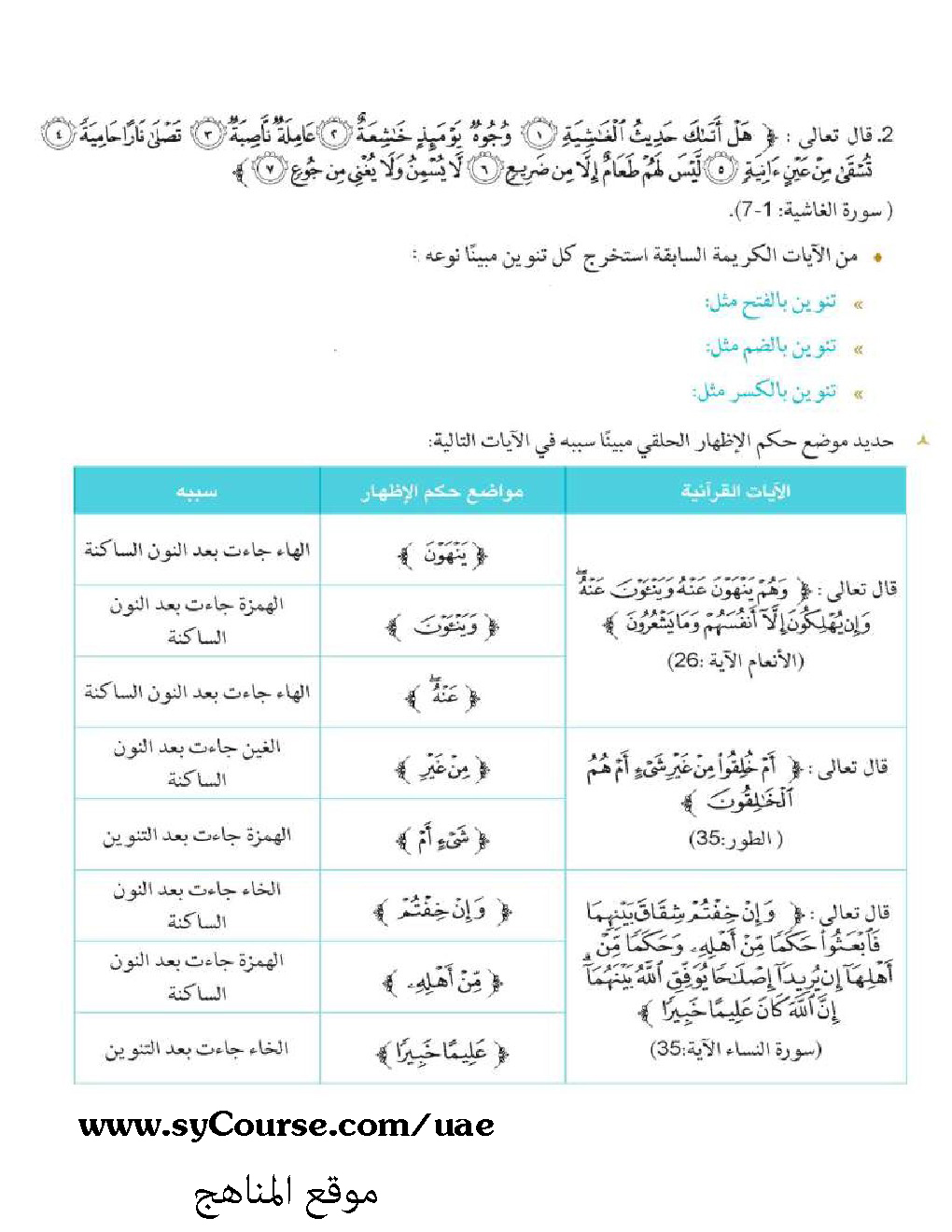 | الملاحظات المثبتة في المناهج الإماراتية | |