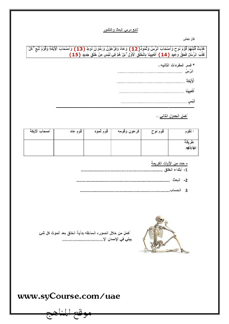 10. أوراق عمل هيكل التربية الإسلامية مع نماذج امتحانات سابقة متبوع بالإجابات
