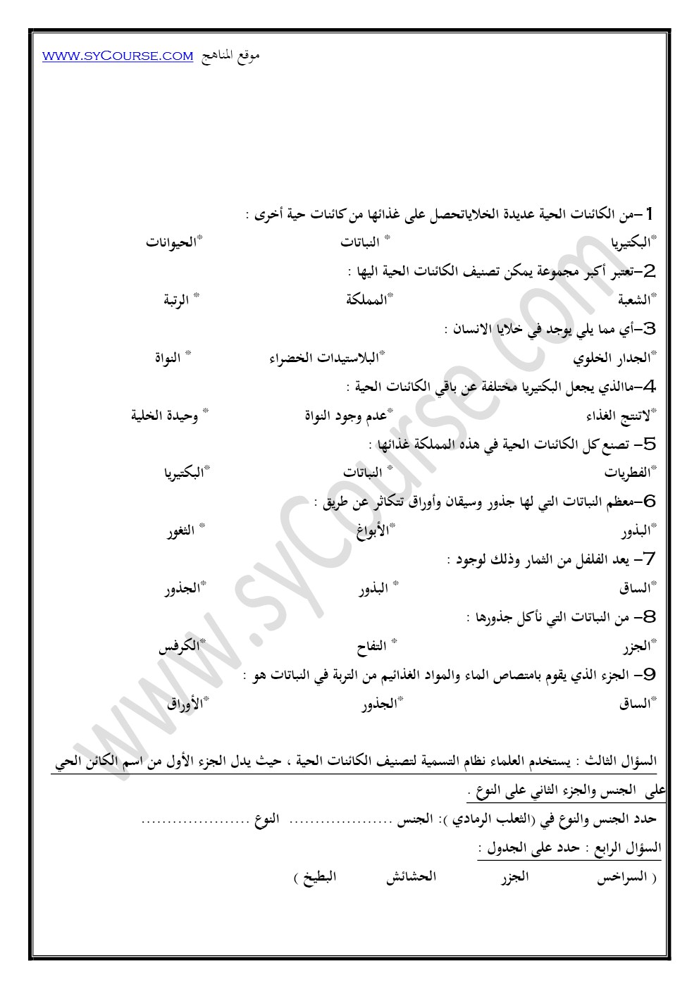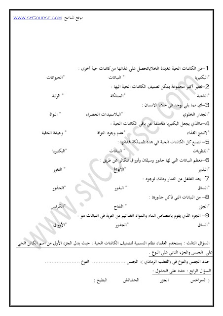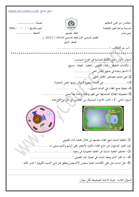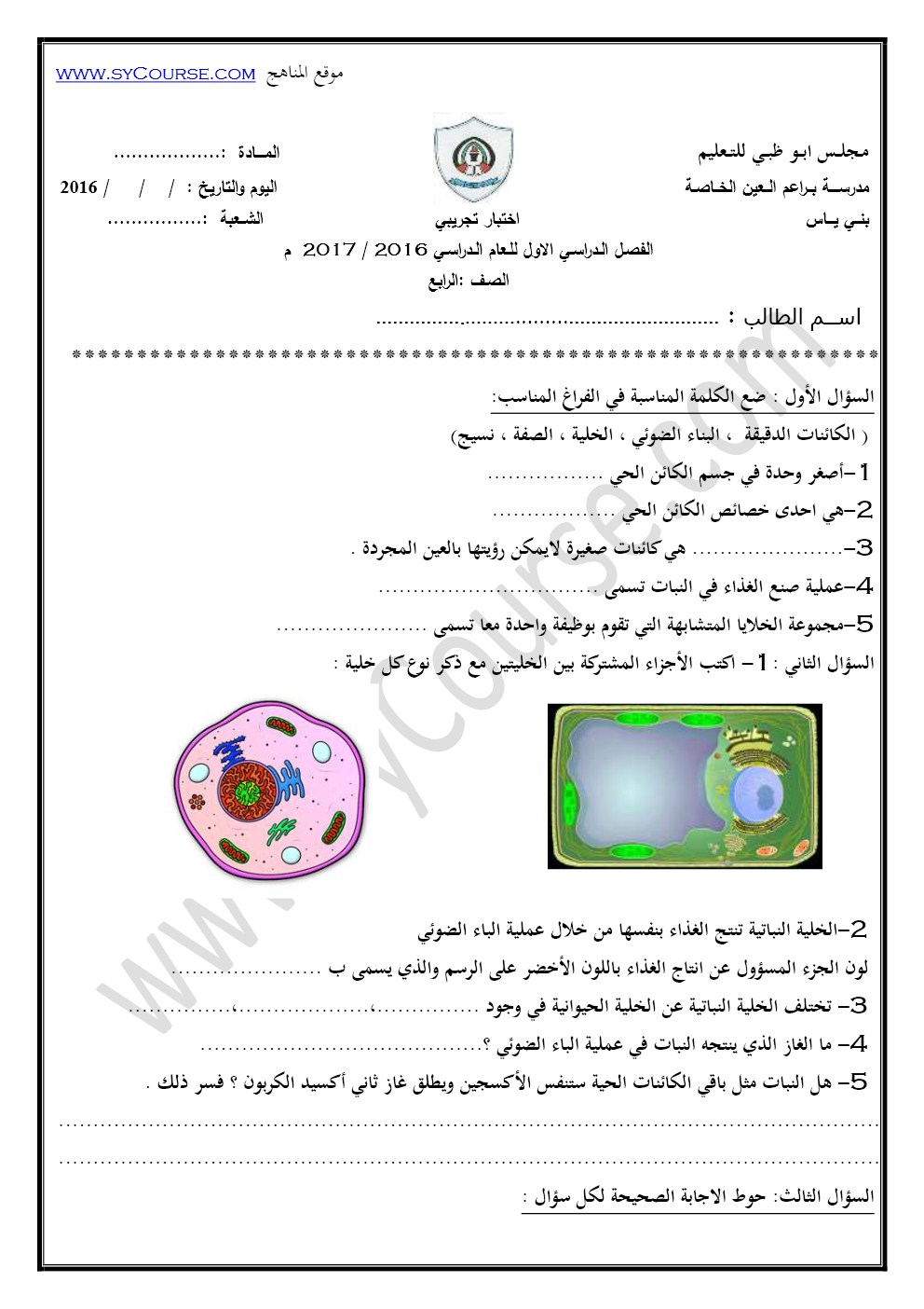 معلومات الملف: الصف الرابع, الفصل الأول, علوم,نموذجتجريبي لامتحان نهاية الفصل الأول من العام الدراسي-2017 | ||