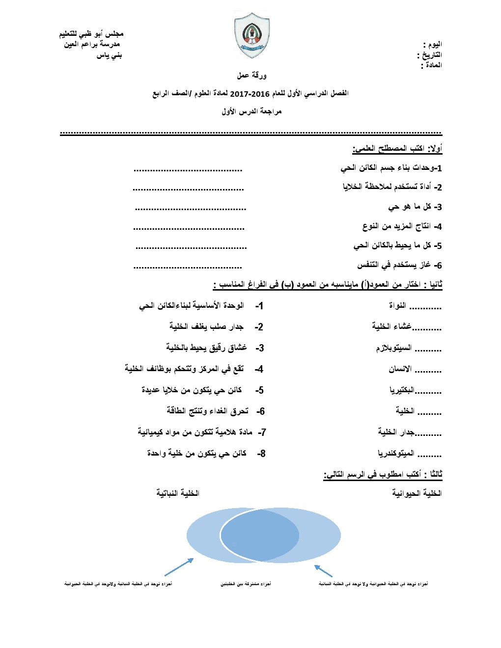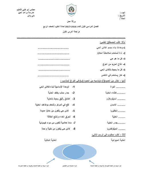 معلومات الملف: الصف الرابع, الفصل الأول, علوم, مراجعة الدرس الأول, العام الدراسي 2016-2017 | ||