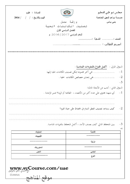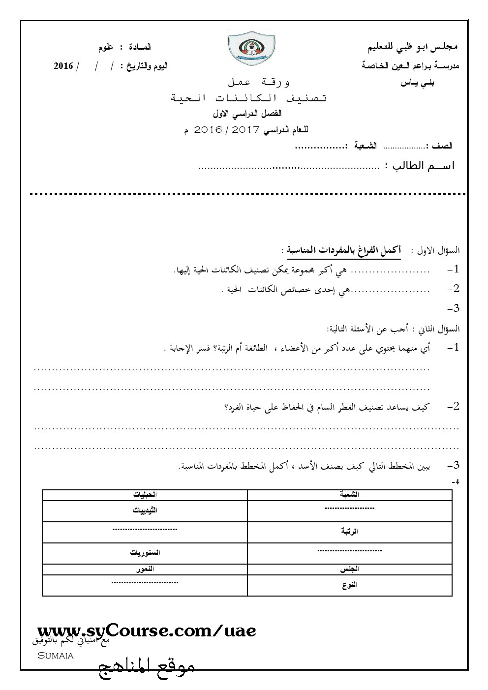 أنت هنا: موقع المناهج ⇦ المناهج الإماراتية ⇦ الصف الرابع ⇦ علوم ⇦ الفصل الأول ⇦ أوراق عمل |