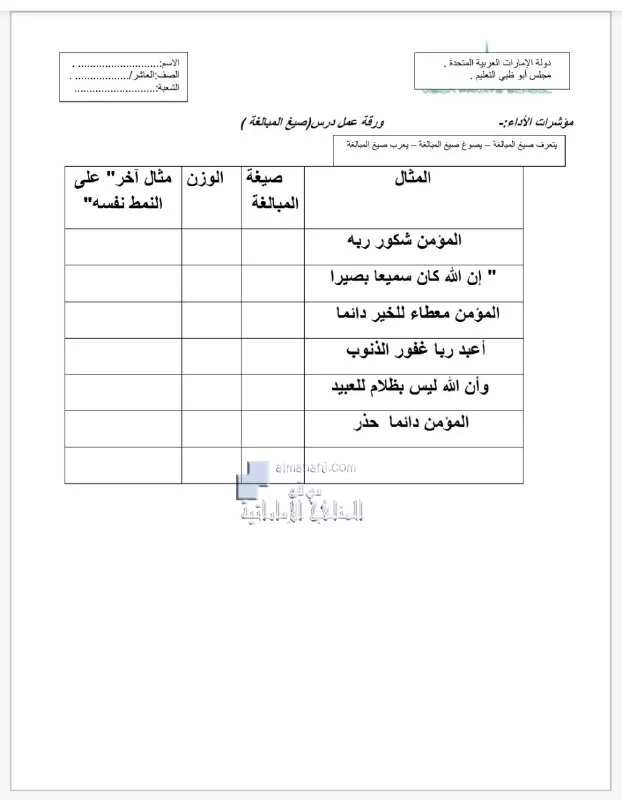 تم إيجاد الملف: ورقة عمل درس صيغ المبالغة