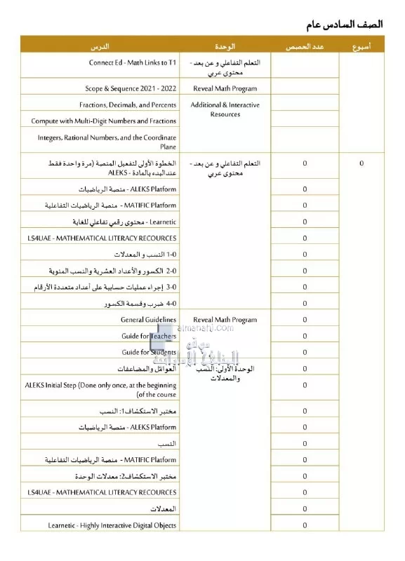 معلومات الملف: نرفق لكم ملف الذي يتضمن التوزيع الزمني للخطة الفصلية من مادة الرياضيات للصف السادس الفصل الدراسي الأول للعام الدراسي 2021-2022 | ||
