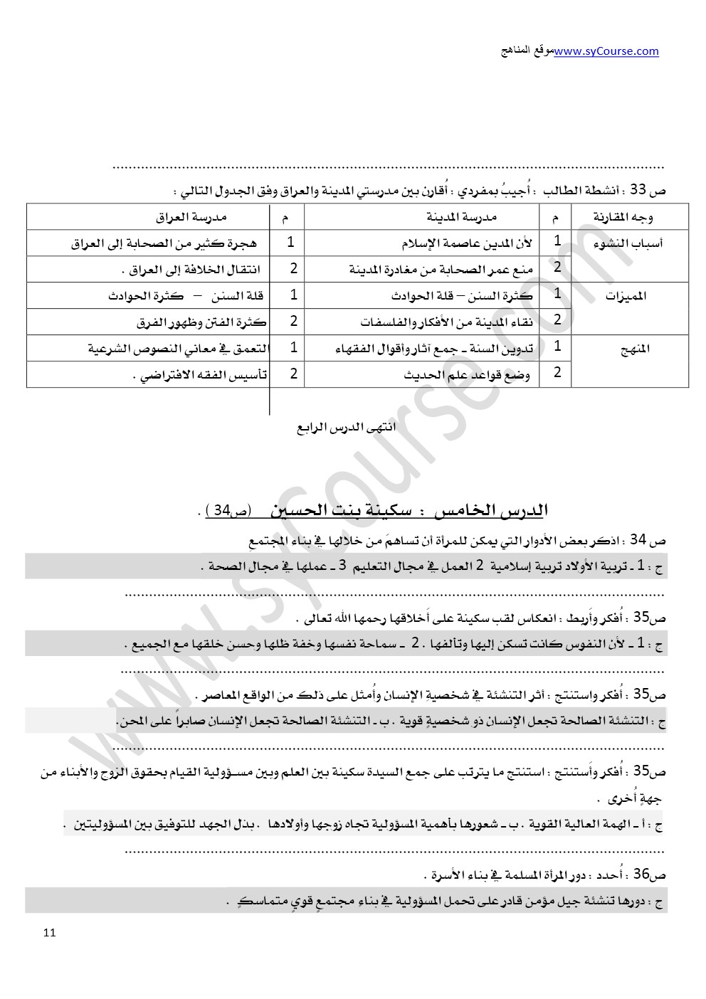 معلومات الملف: الصف العاشر,الفصل الأول, تربية اسلامية, حلول كامل الكتاب (المنهاج الحديث) 2017 | ||