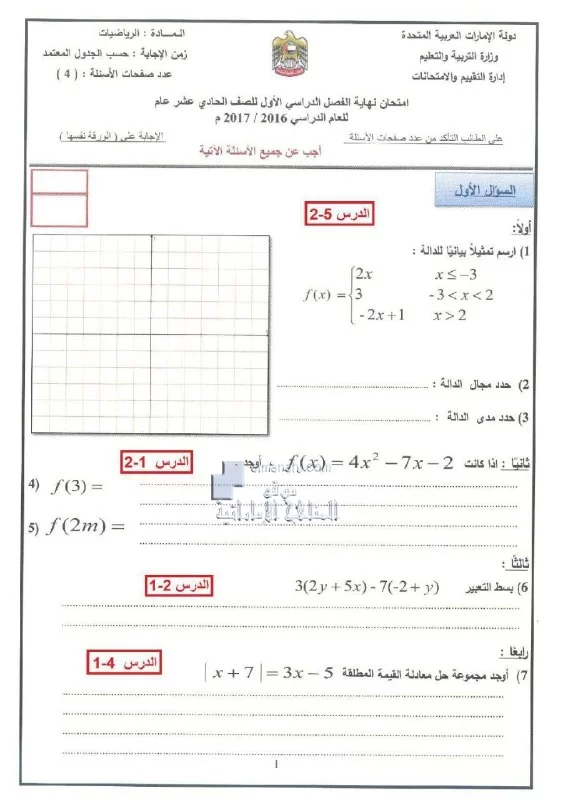 أنت هنا: موقع المناهج ⇦ المناهج الإماراتية ⇦ الصف الحادي عشر العام ⇦ رياضيات ⇦ الفصل الأول ⇦ الامتحان النهائي |