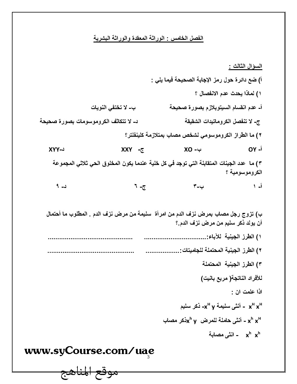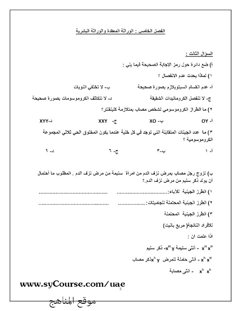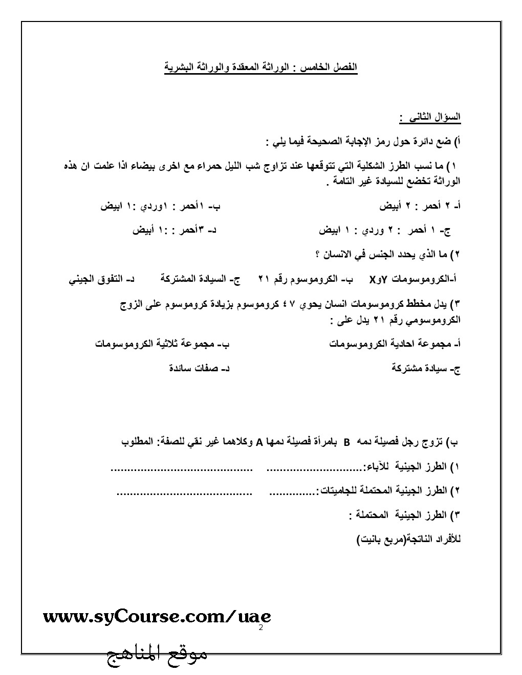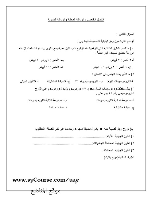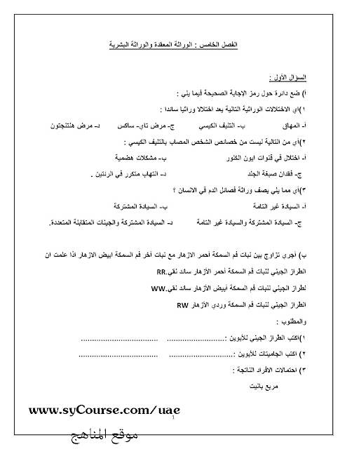 إليكم اختبار مكون من 4 صفحات في مادة العلوم للصف الثاني عشر -الفصل الخامس- الوراثة المعقدة والوراثة البشرية وفق المنهاج الاماراتي الحديث للعام الدراسي 2016-2017 |
