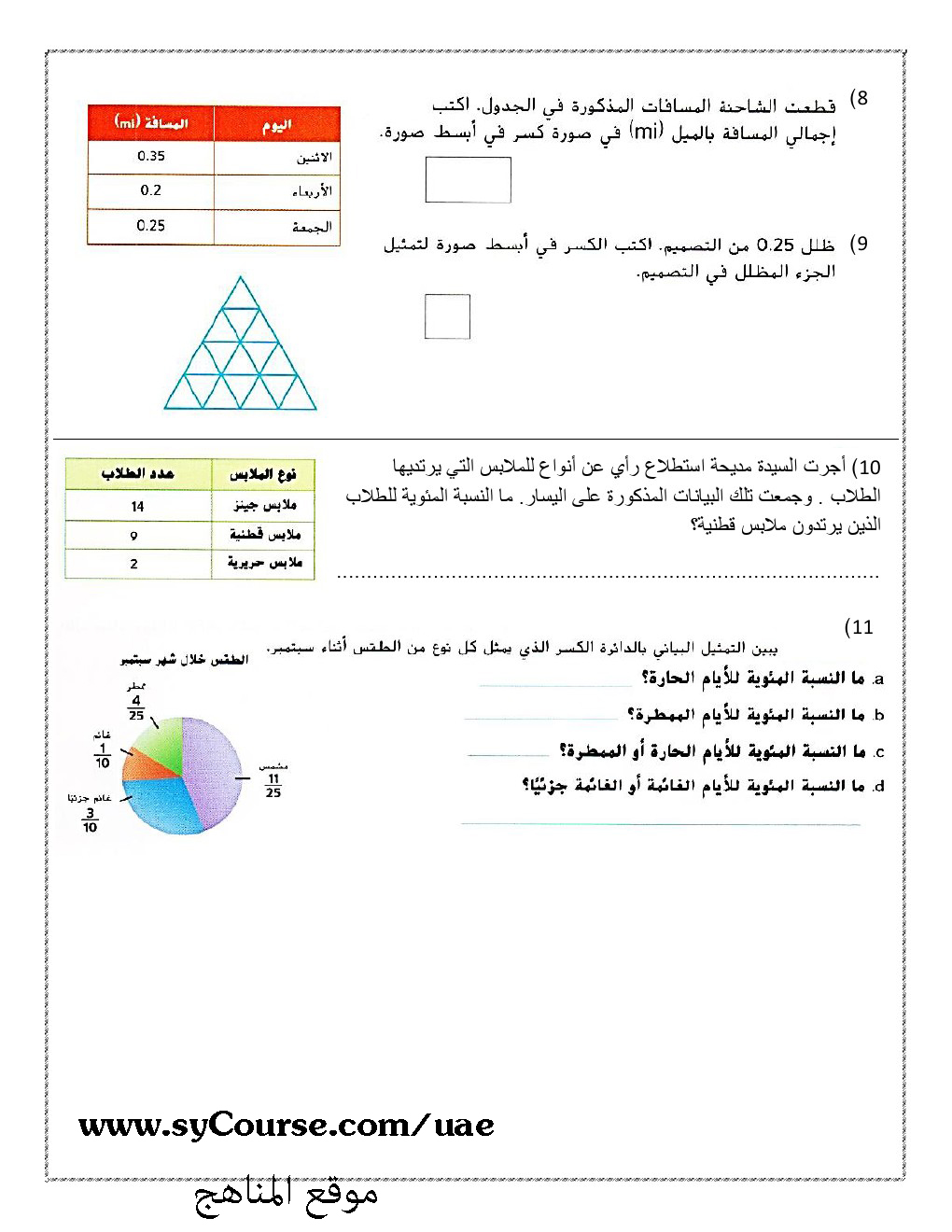 1. أوراق عمل مراجعة الكسور والأعداد العشرية