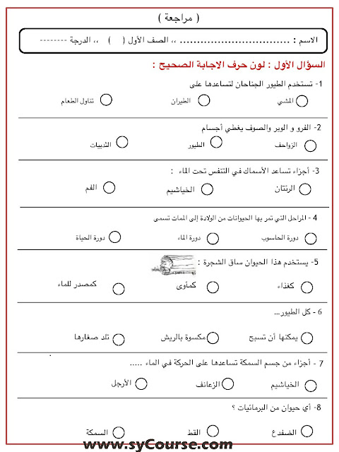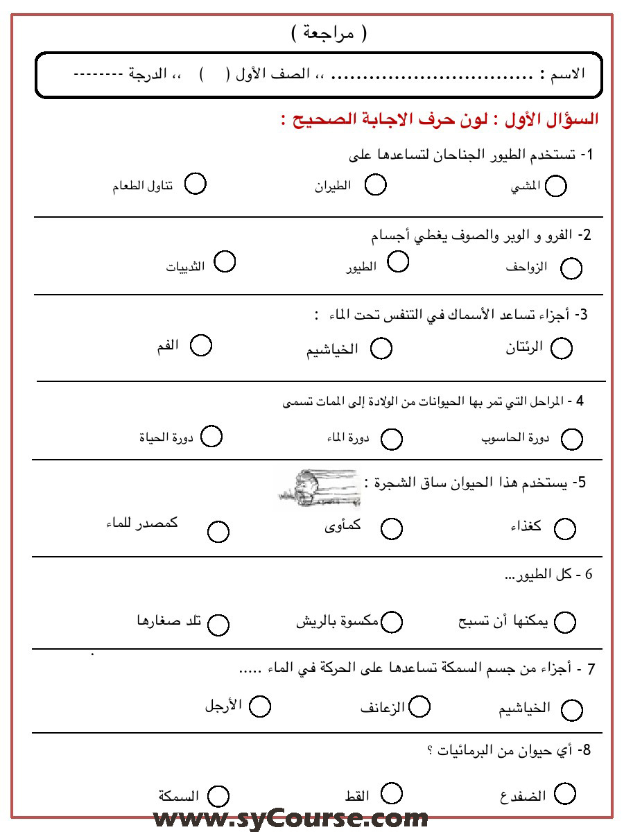 معلومات الملف: الصف الأول, الفصل الأول, علوم, كل شيء عن الحيوانات | ||