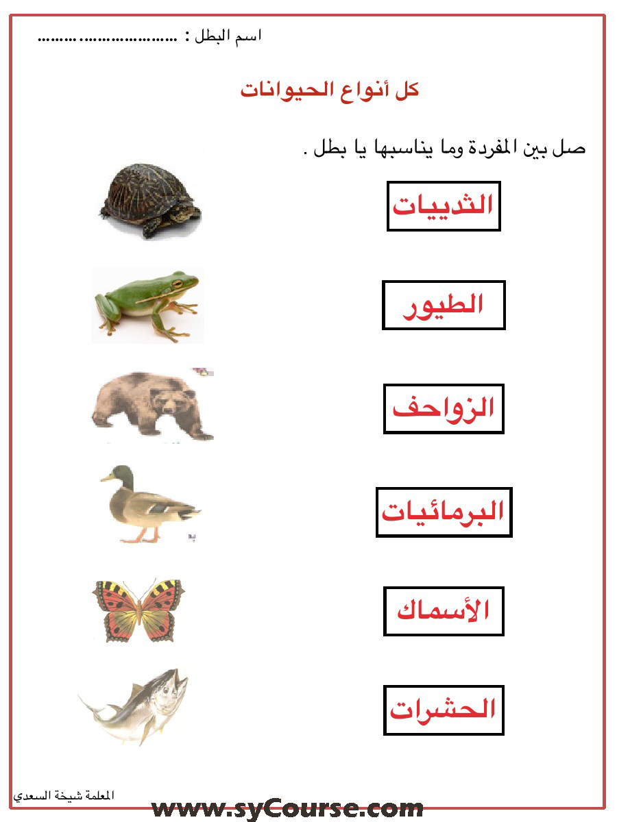 كل ما يتعلق بالحيوانات ضمن أوراق عمل جميلة وممتعة لأبطالنا الأعزاء طلاب الصف الأول