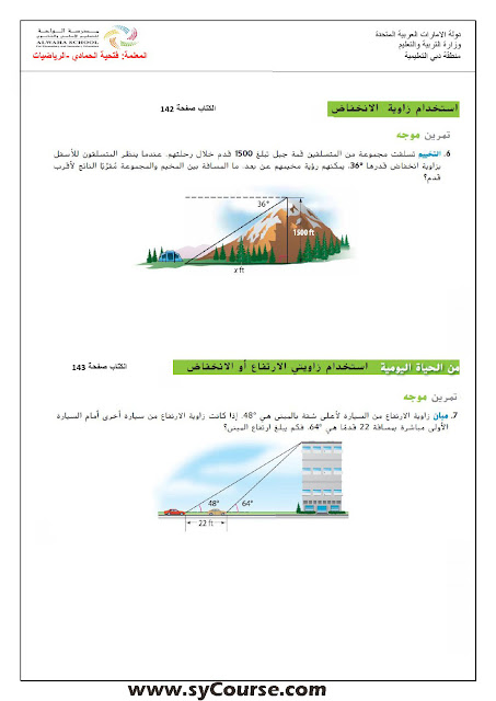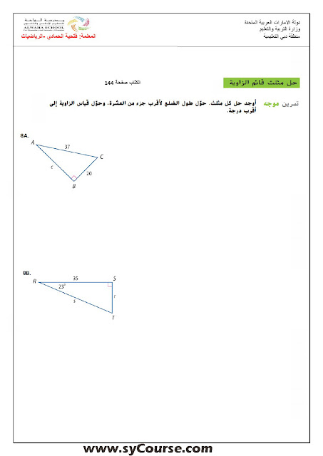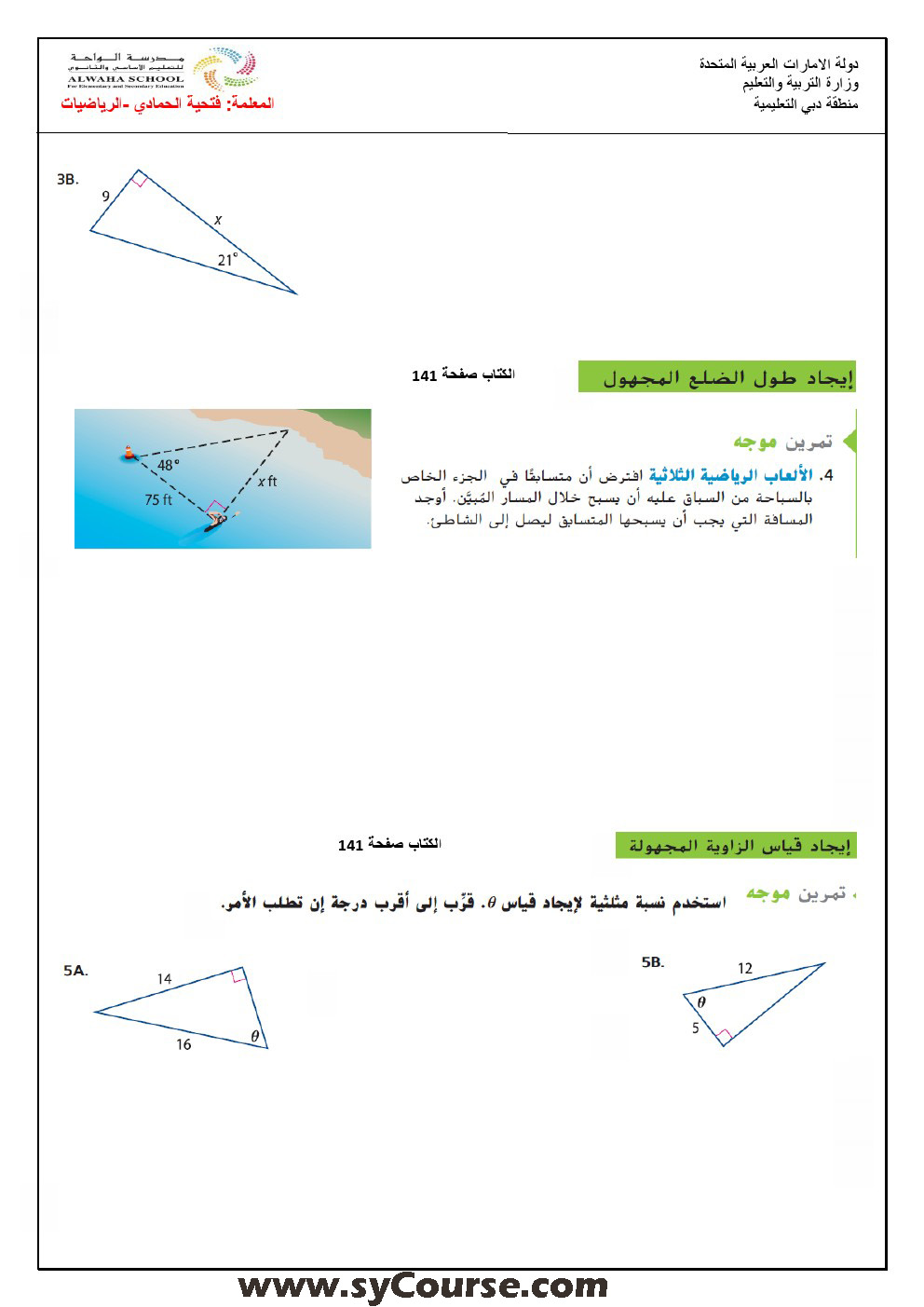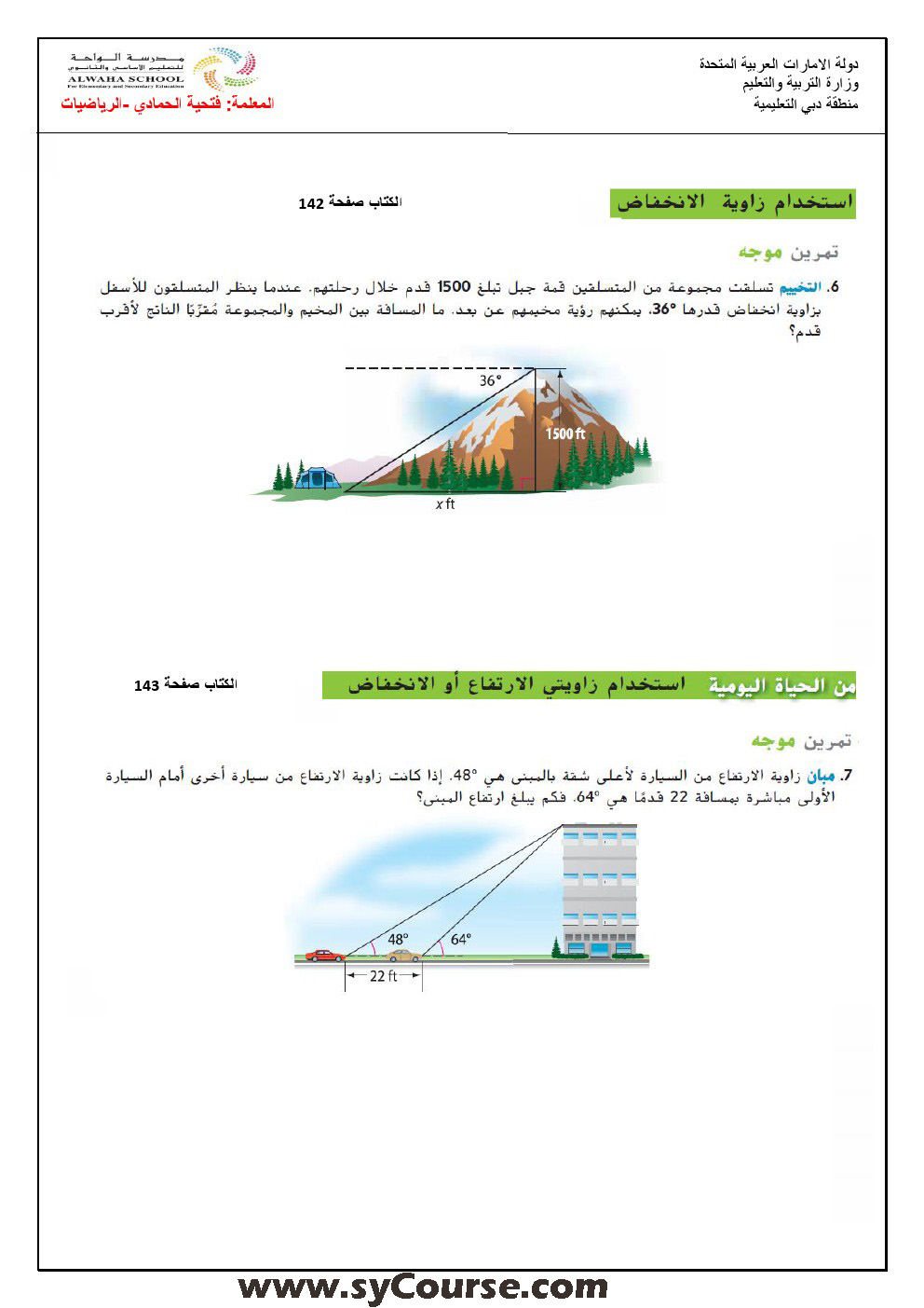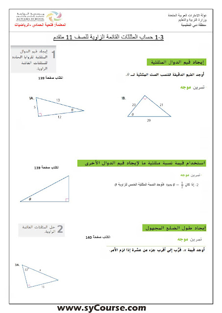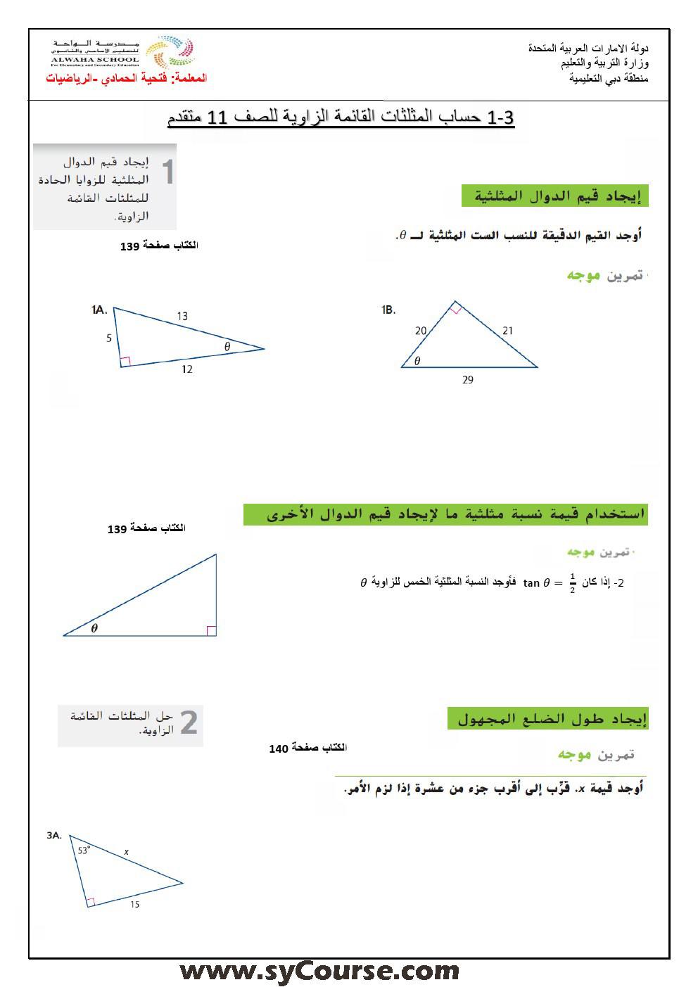 معلومات الملف: الصف الحادي عشر المتقدم, الفصل الأول, رياضيات, حساب المثلثات القائمة الزاوية | ||
