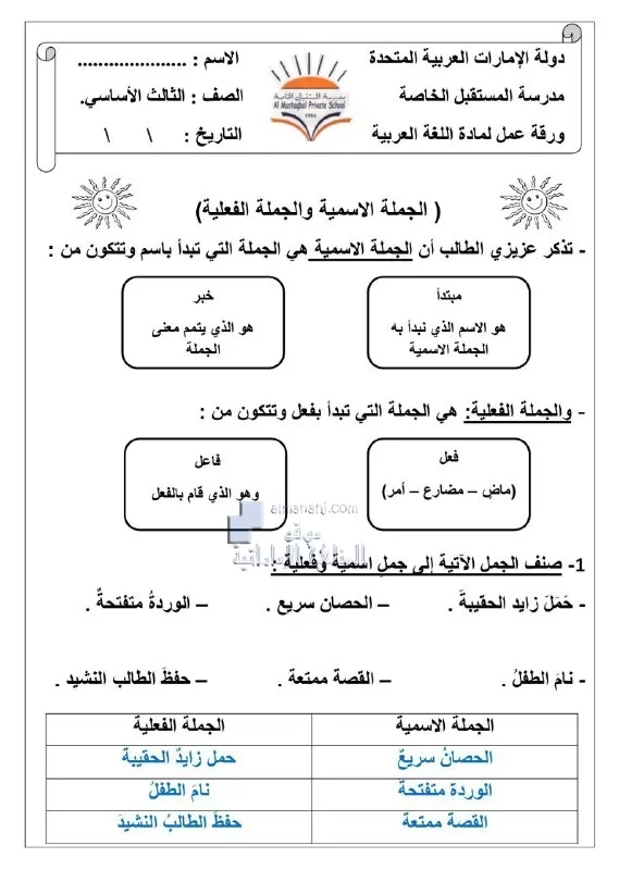 ورقة عمل درس الجملة الاسمية والجملة الفعلية مع الحل | ||