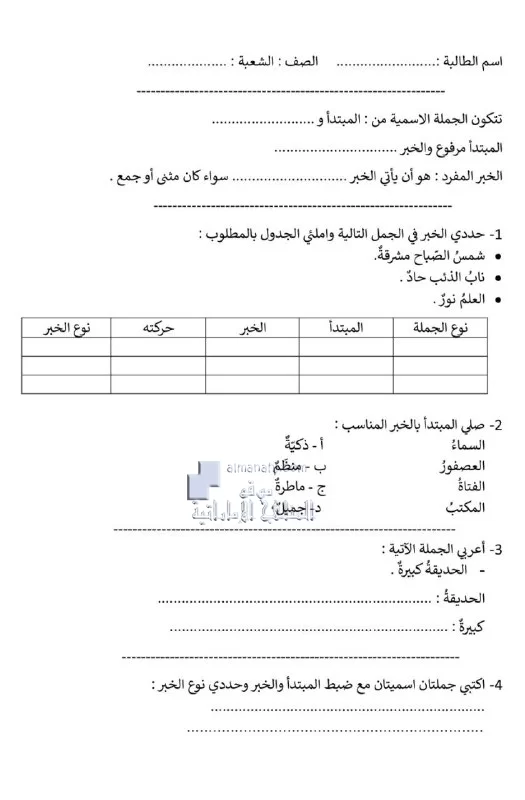 تم إيجاد الملف: ورقة عمل درس الخبر المفرد