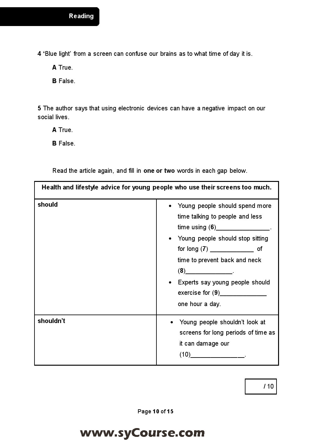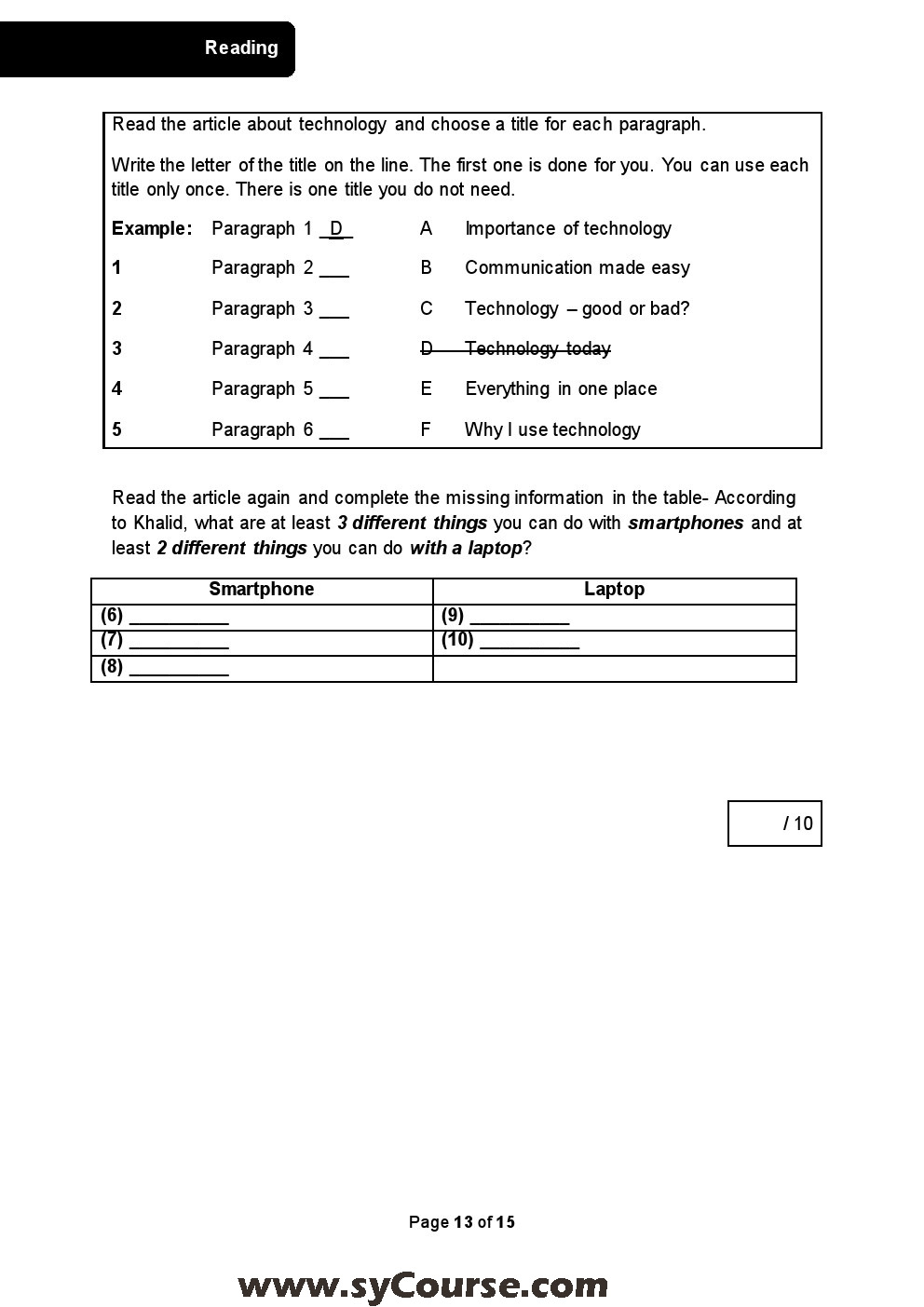 معلومات الملف: الصف العاشر, الفصل الأول, لغة انكليزية,نموذجامتحاني G10 SAMPLE TP Final | ||