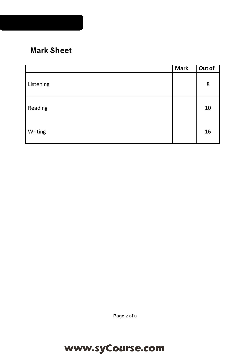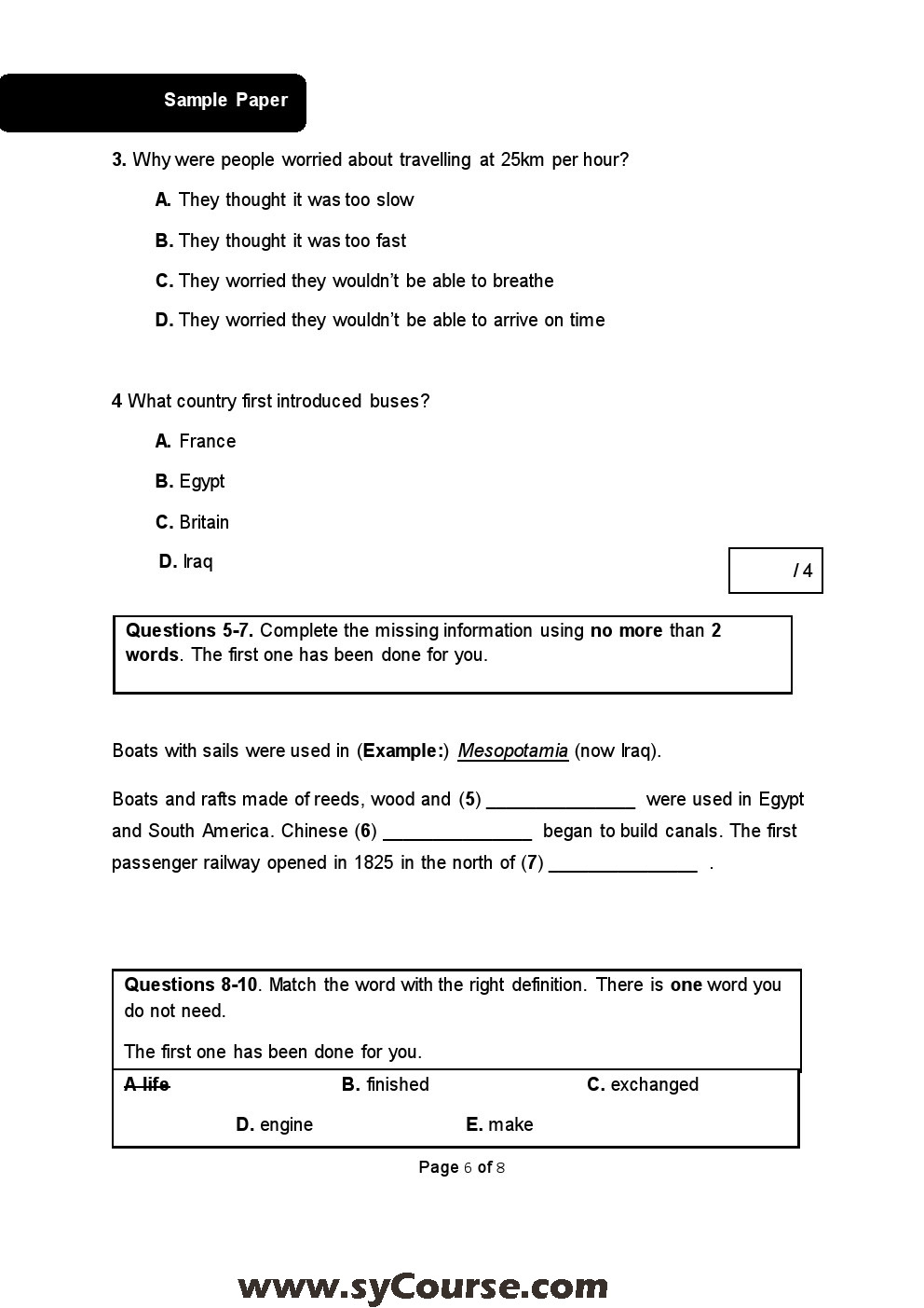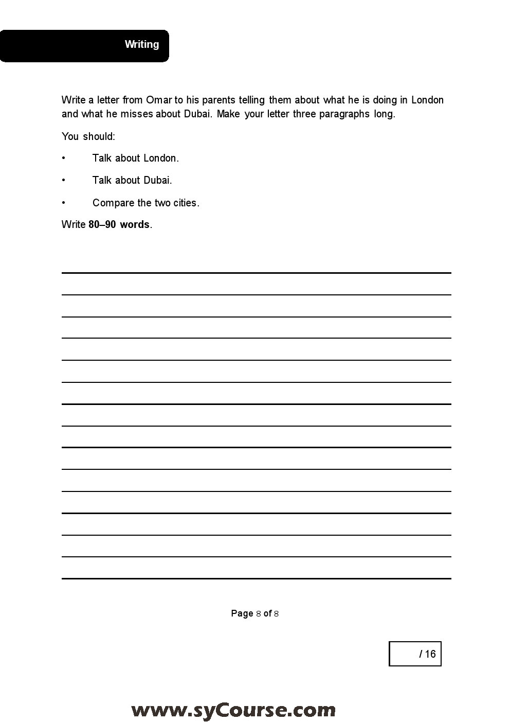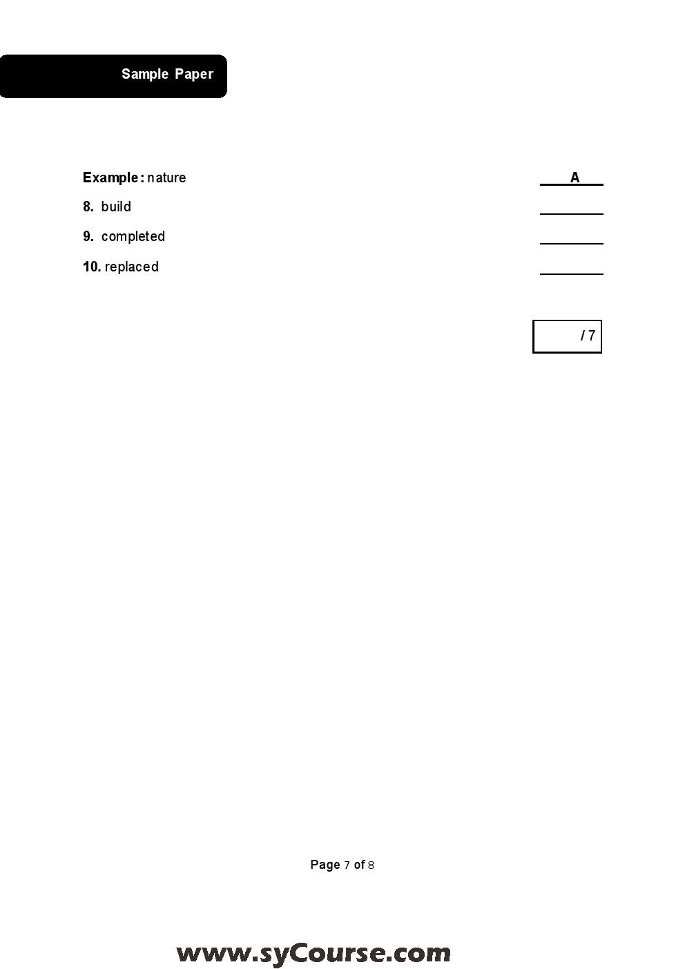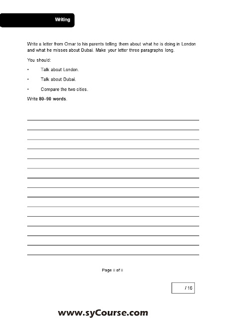 الصف السابع, الفصل الأول, لغة انكليزية,نموذجامتحاني SAMPLE TP Final